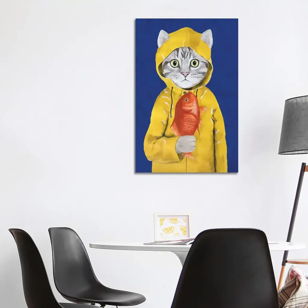 Icanvas "Cat With Fish" By Coco De Paris Canvas Print - 18x12x1.5