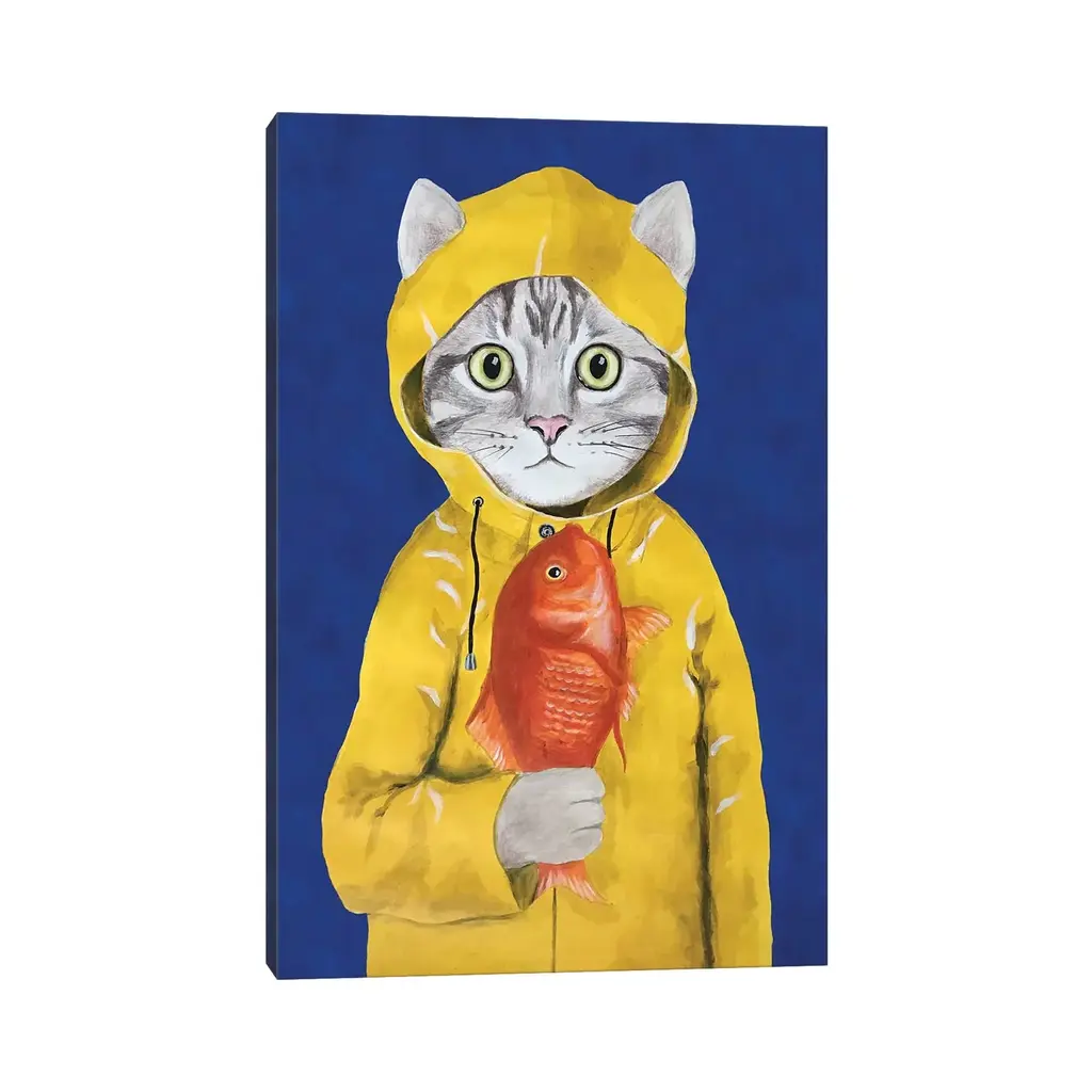 Icanvas "Cat With Fish" By Coco De Paris Canvas Print - 26x18x1.5