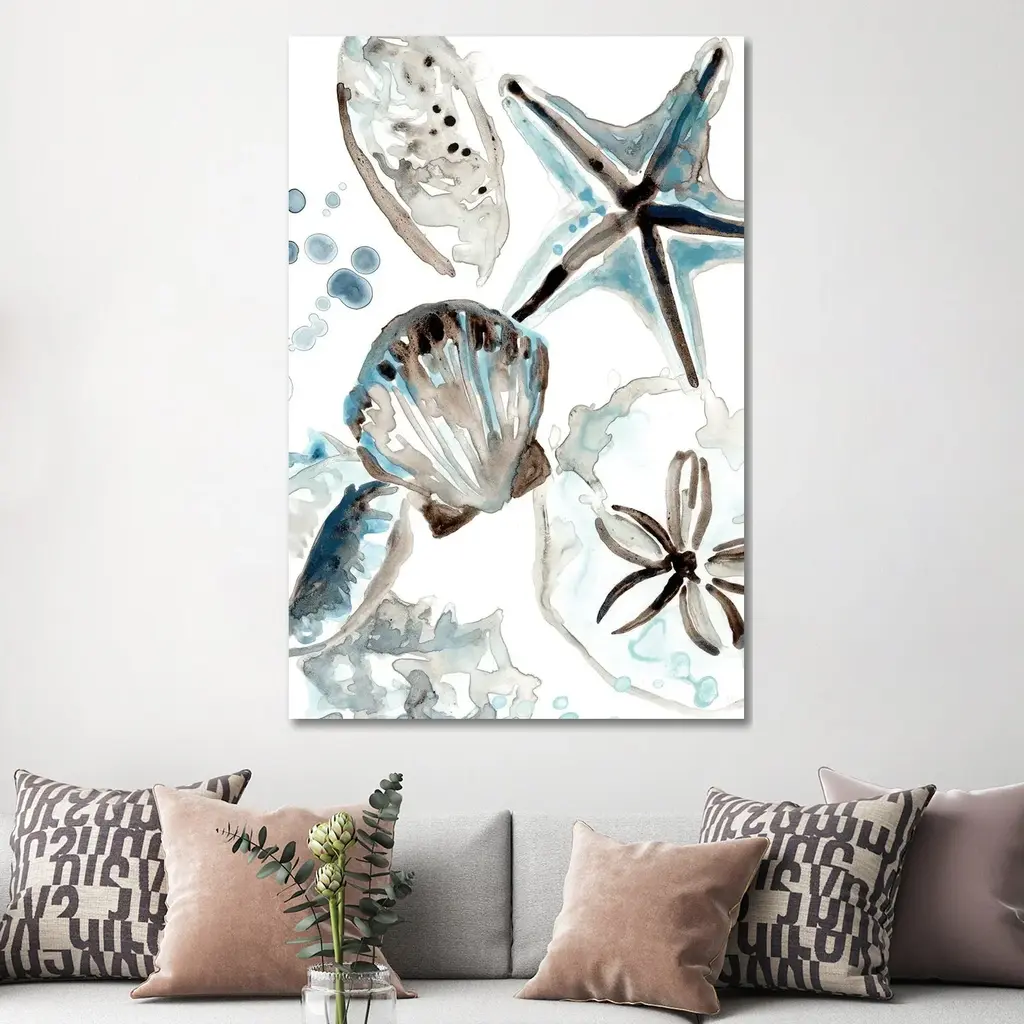 Icanvas "Cerulean Seashells I" By June Erica Vess Canvas Print - 18x12x1.5