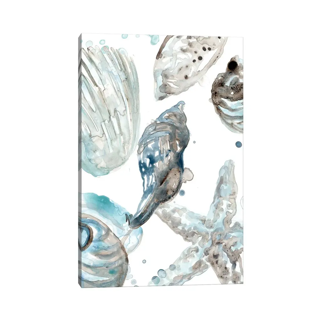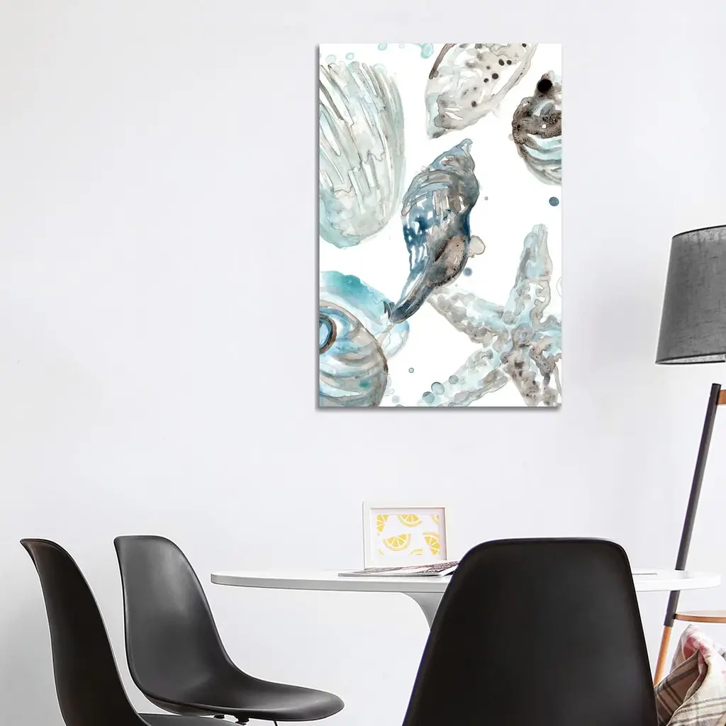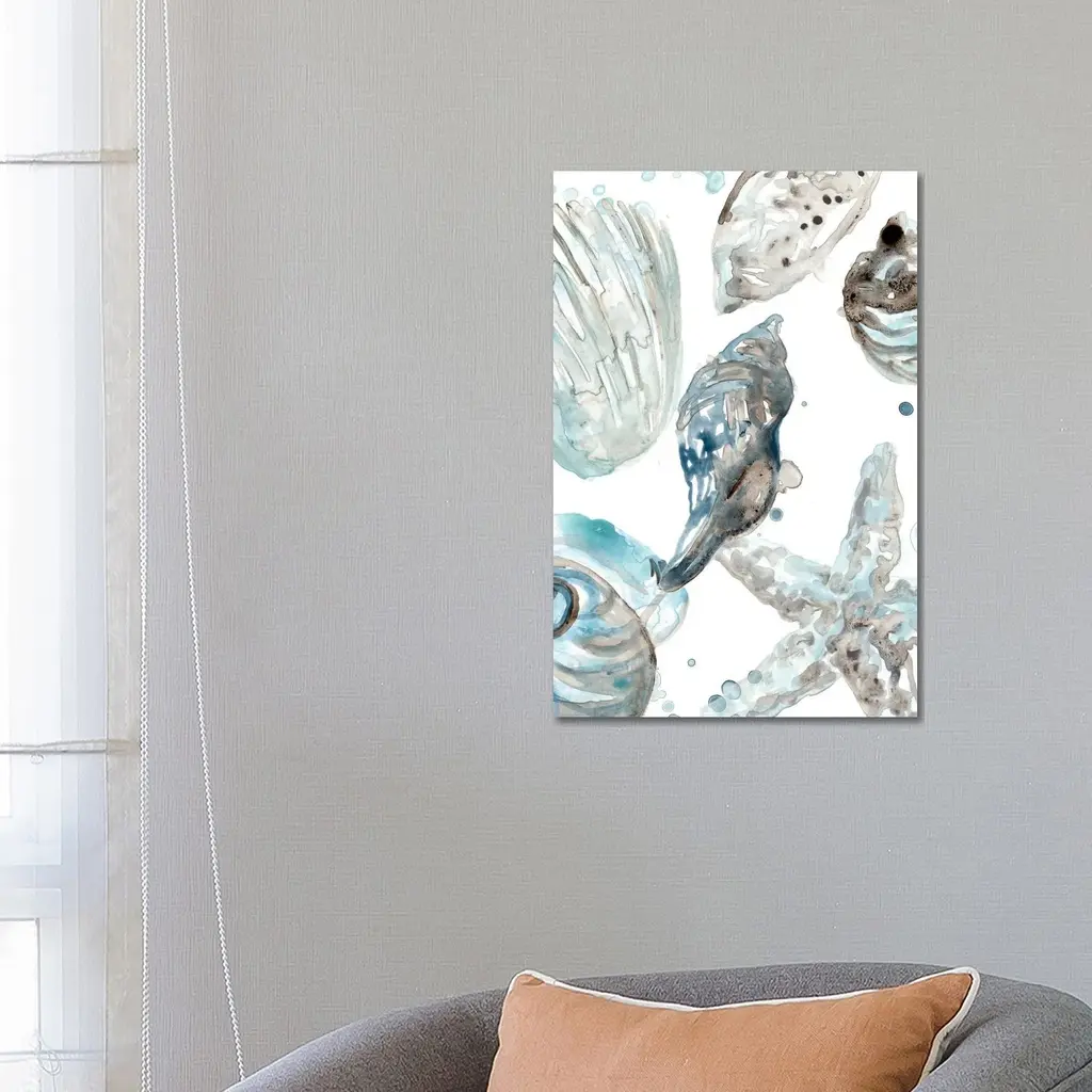 Icanvas "Cerulean Seashells Iii" By June Erica Vess Canvas Print - 40x26x1.5