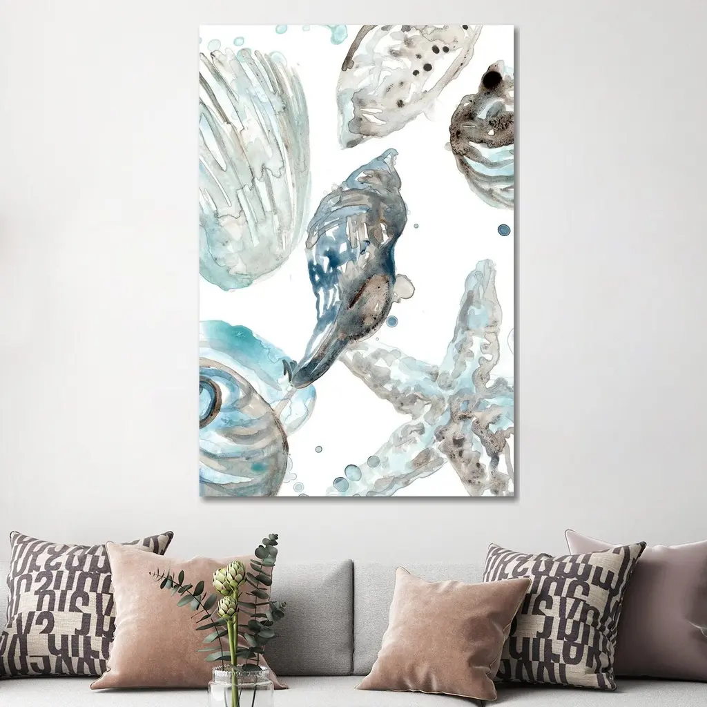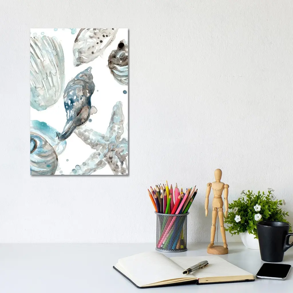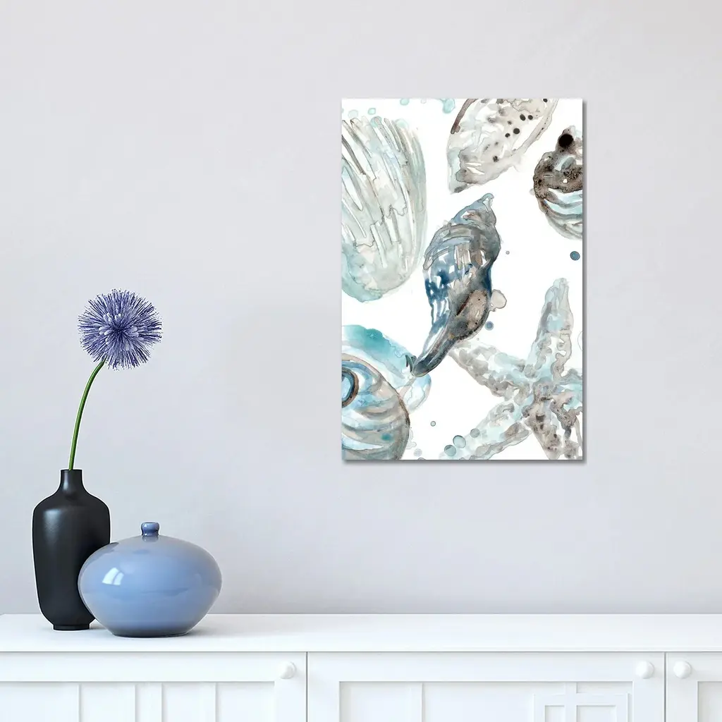 Icanvas "Cerulean Seashells Iii" By June Erica Vess Canvas Print - 48x32x1.5