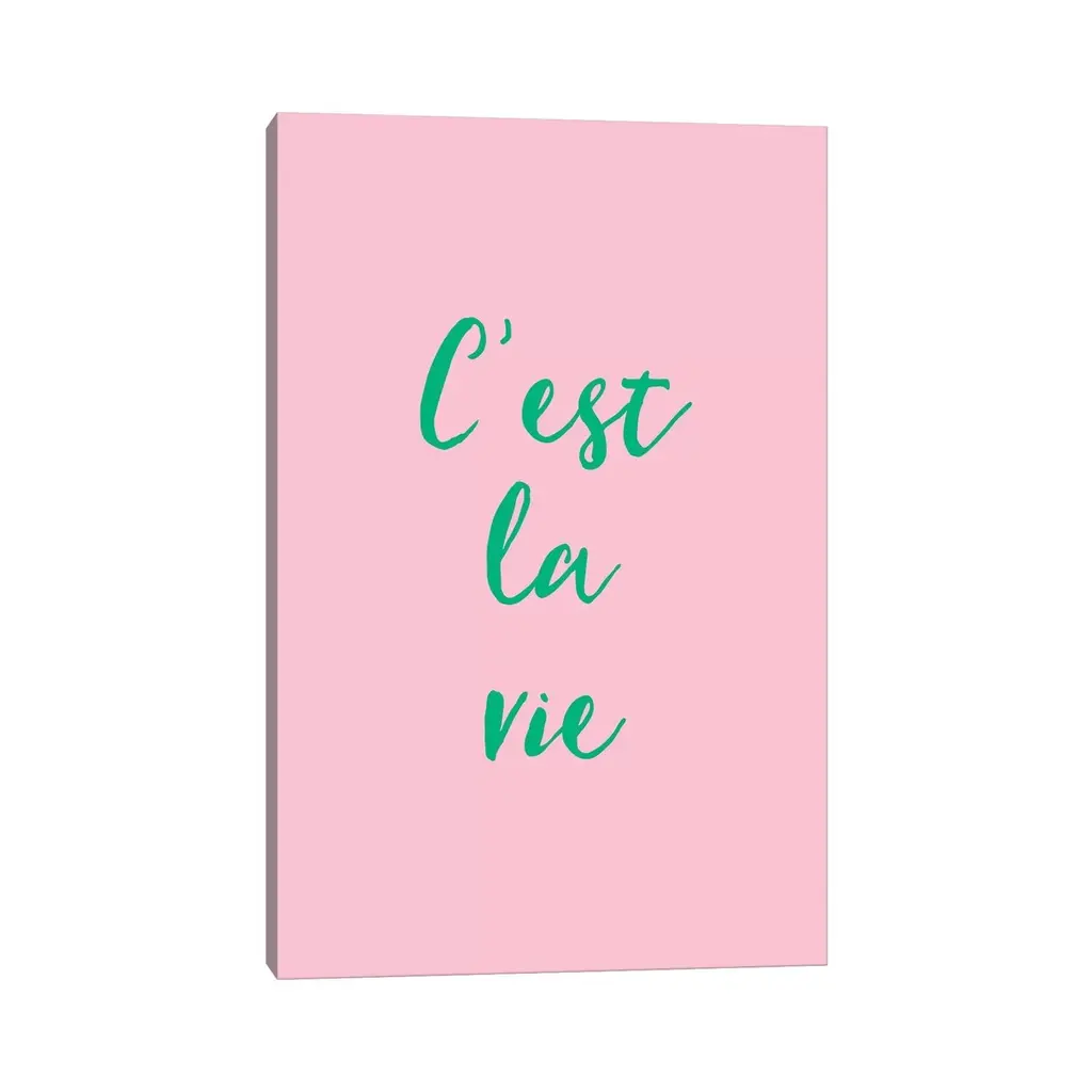 Icanvas "C'est La Vie Pink And Green" By Ruby And B Canvas Print - 12x8x0.75