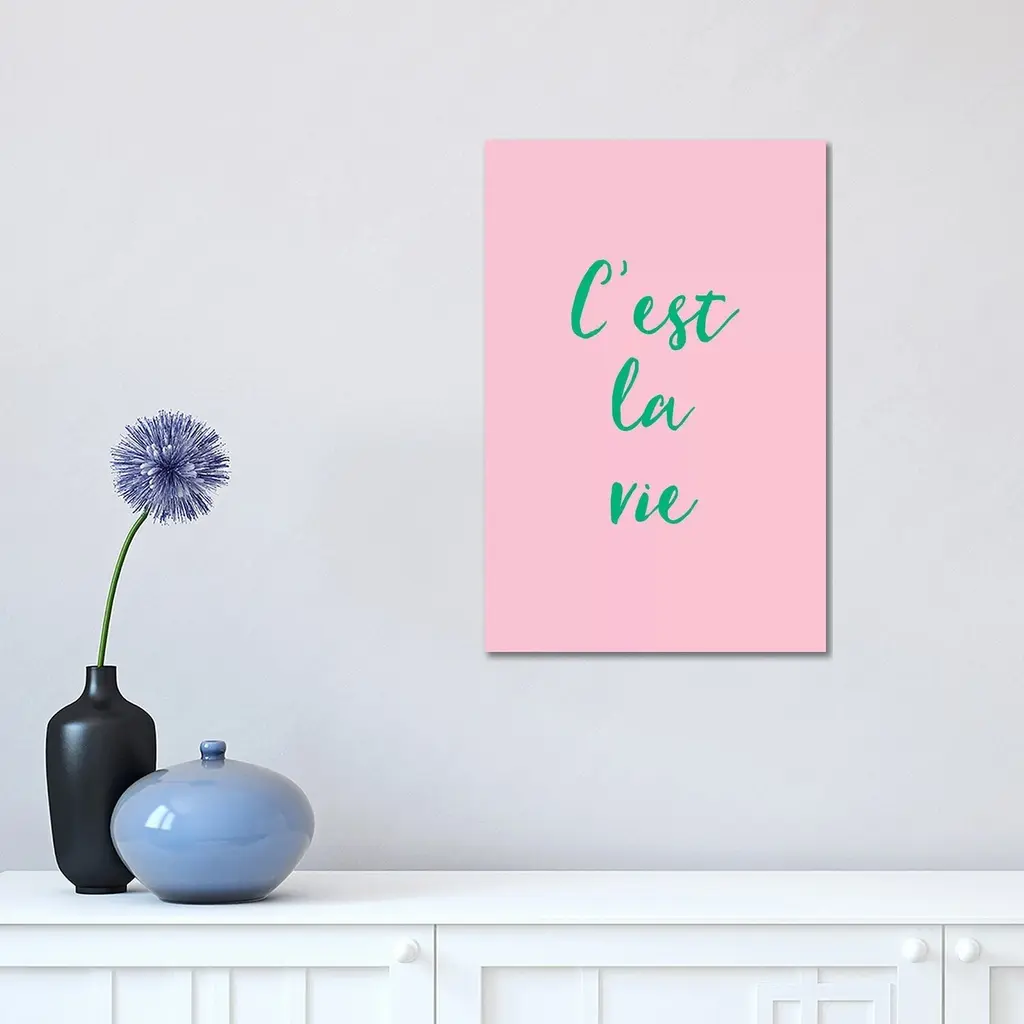 Icanvas "C'est La Vie Pink And Green" By Ruby And B Canvas Print - 18x12x1.5