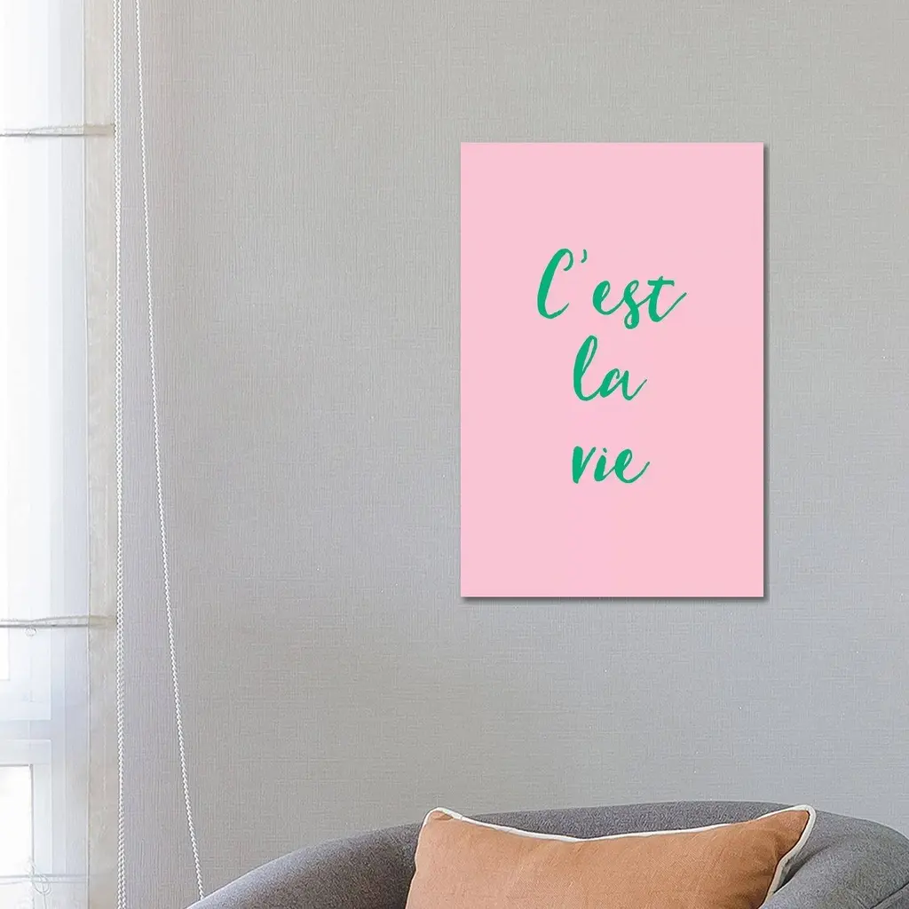 Icanvas "C'est La Vie Pink And Green" By Ruby And B Canvas Print - 26x18x1.5