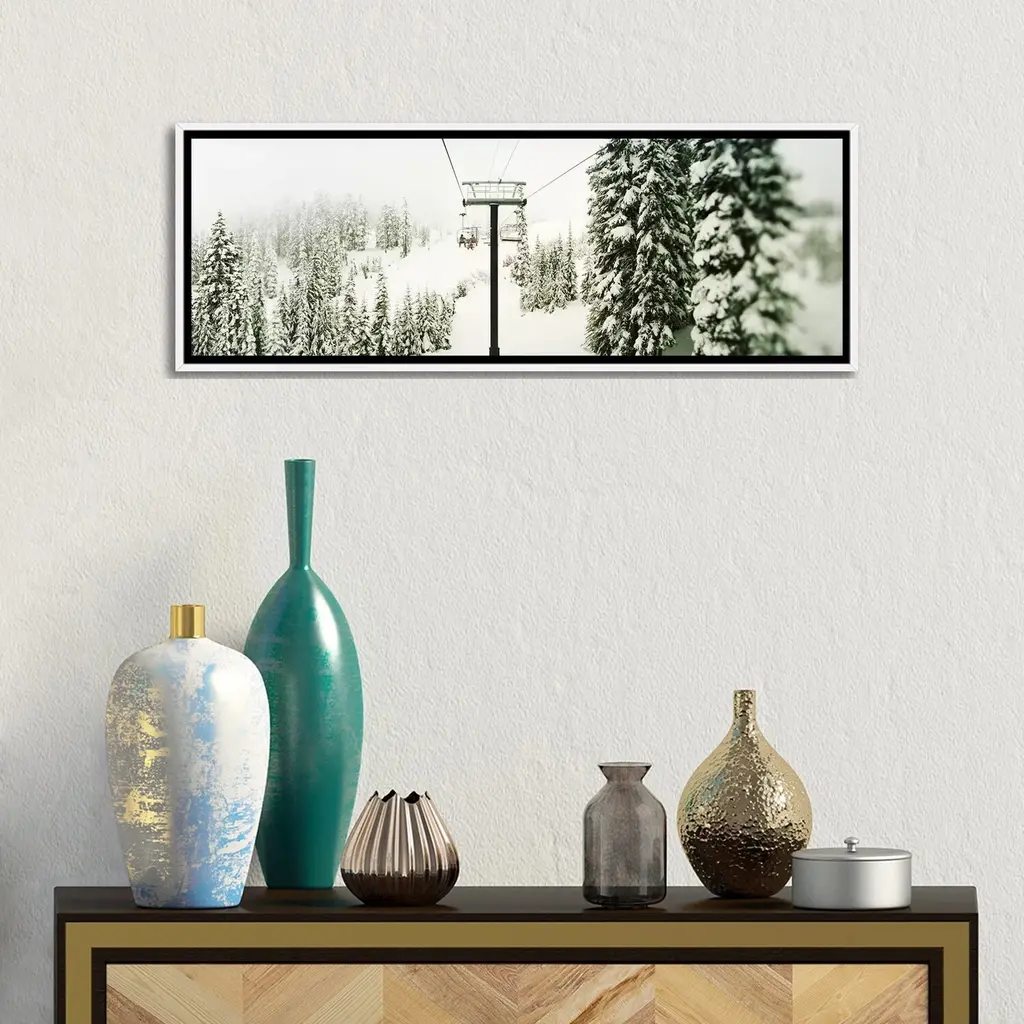 Icanvas "Chair Lift And Snowy Evergreen Trees At Stevens Passwashington State, Usa" By Panoramic Images Framed Canvas Print - 12x36 - White