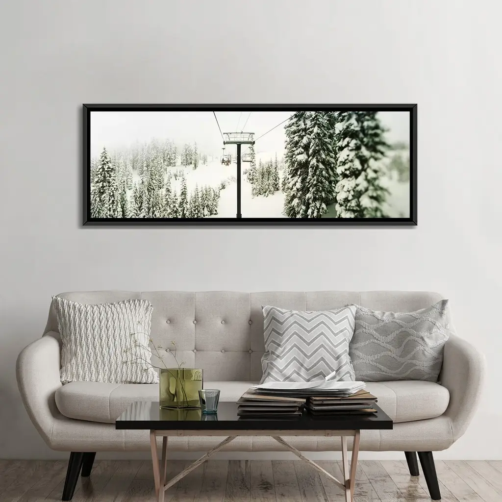 Icanvas "Chair Lift And Snowy Evergreen Trees At Stevens Passwashington State, Usa" By Panoramic Images Framed Canvas Print - 24x72 - Black