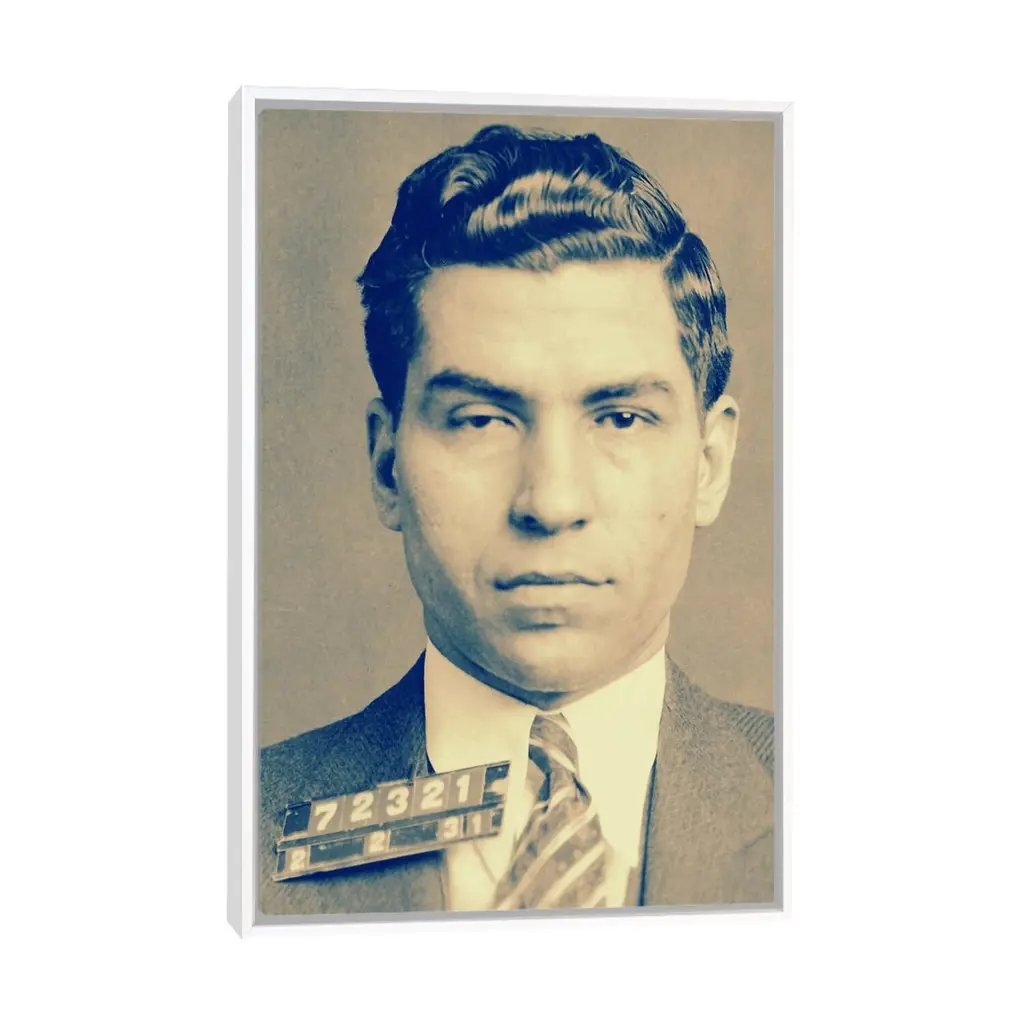Icanvas "Charlie "Lucky" Luciano - Gangster Mugshot" By Unknown Artist Framed Canvas Print - Black - 40x26