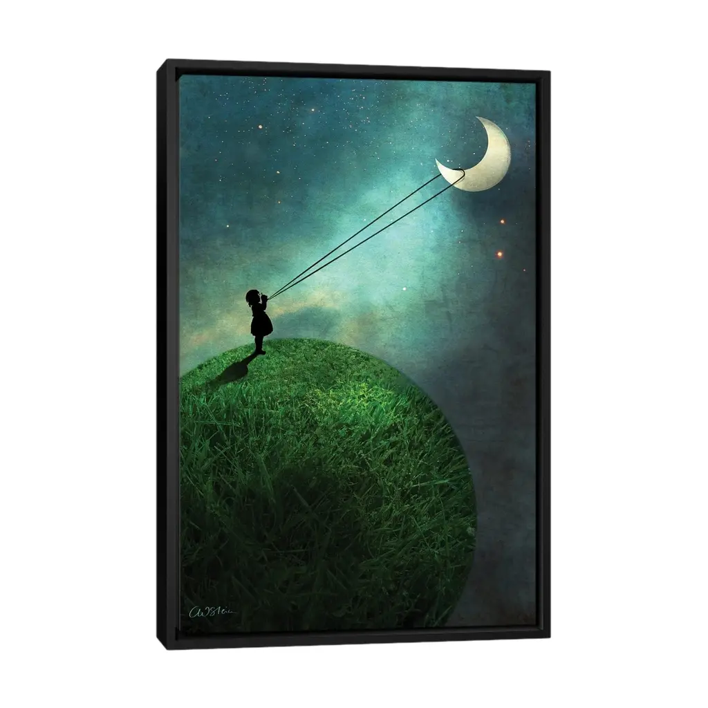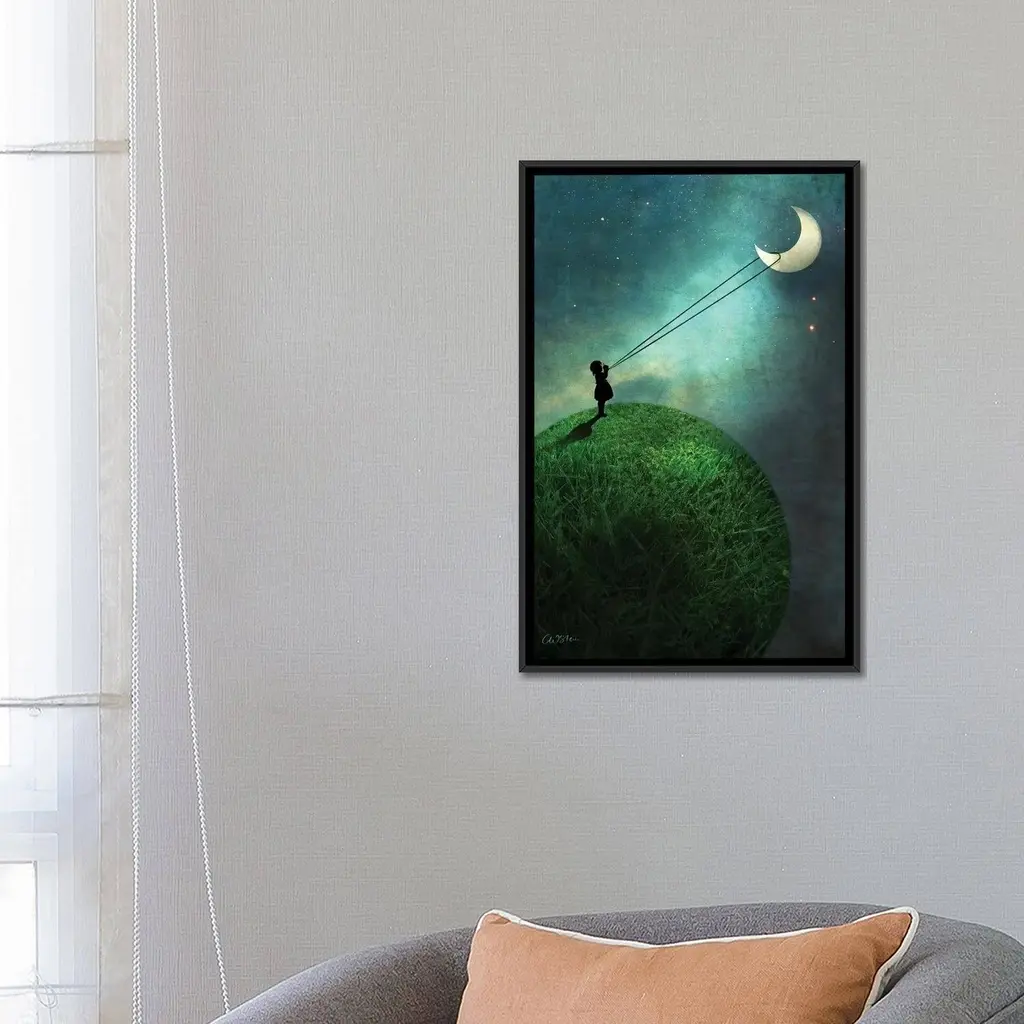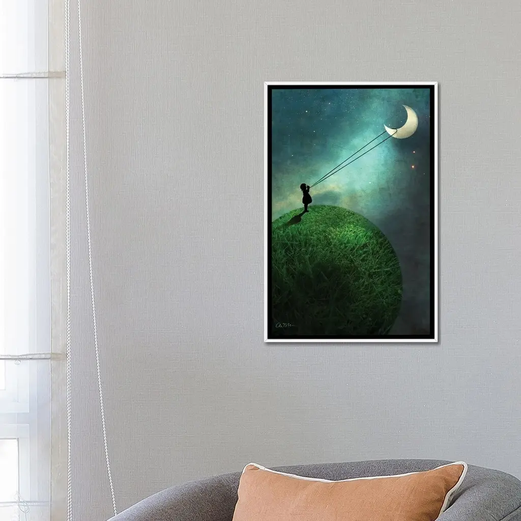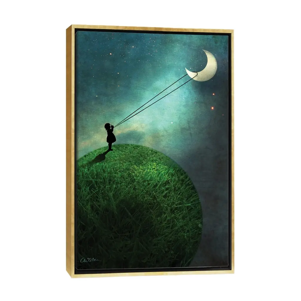 Icanvas "Chasing The Moon" By Catrin Welz-Stein Framed Canvas Print - Gold - 26x18