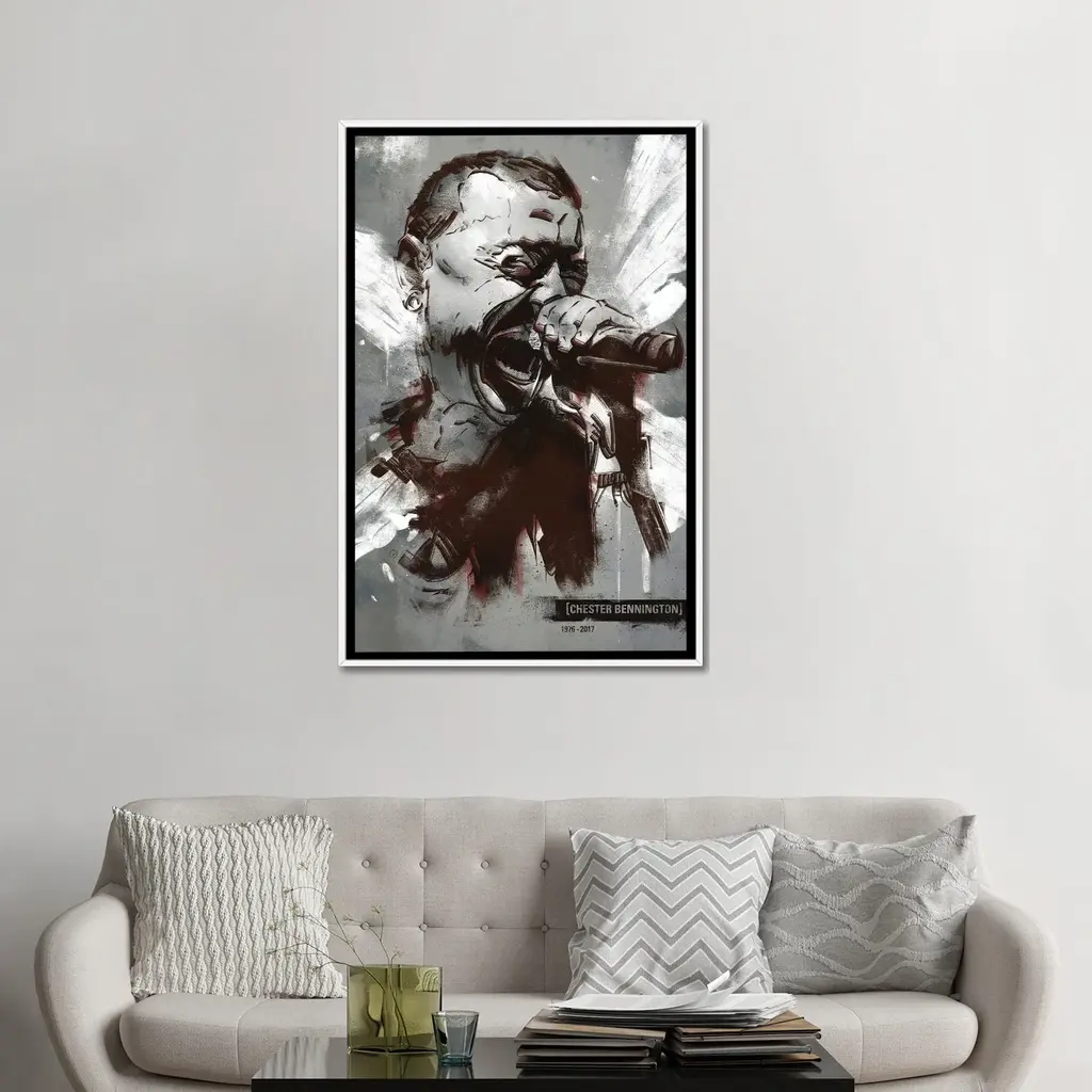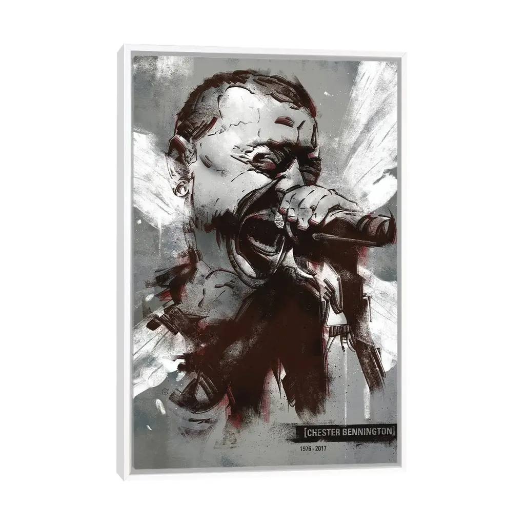 Icanvas "Chester Bennington I" By Nikita Abakumov Framed Canvas Print - Black - 26x18