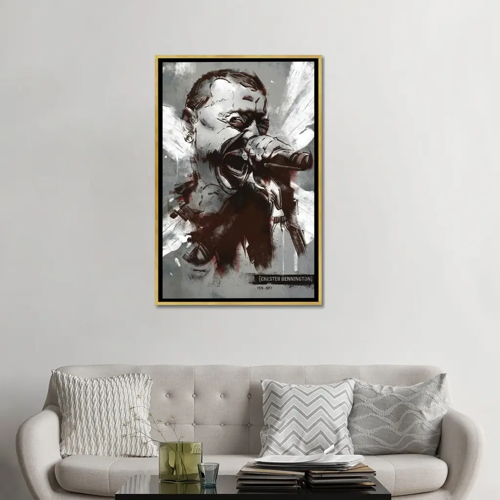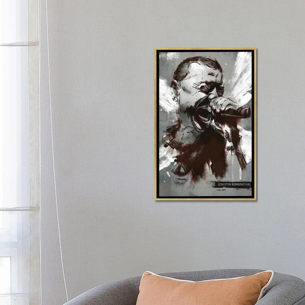 Icanvas "Chester Bennington I" By Nikita Abakumov Framed Canvas Print - Black - 48x32