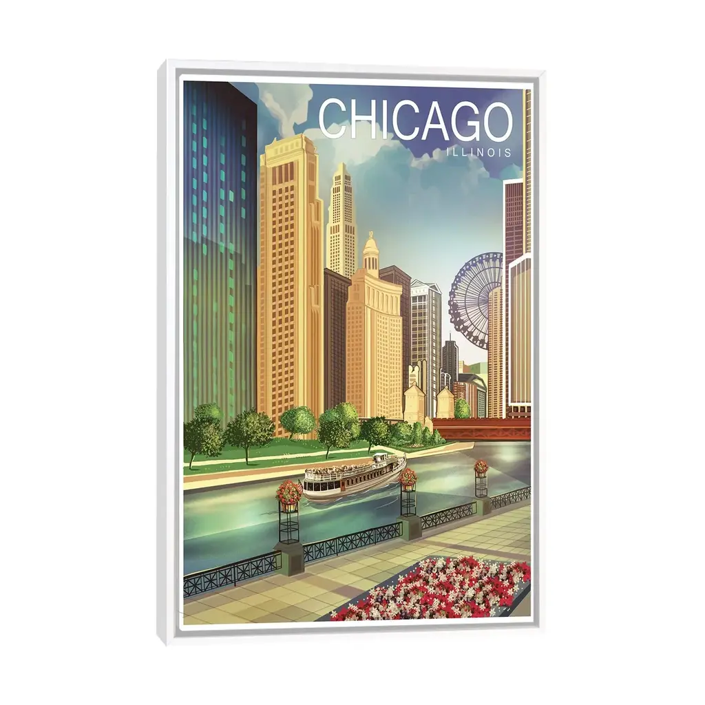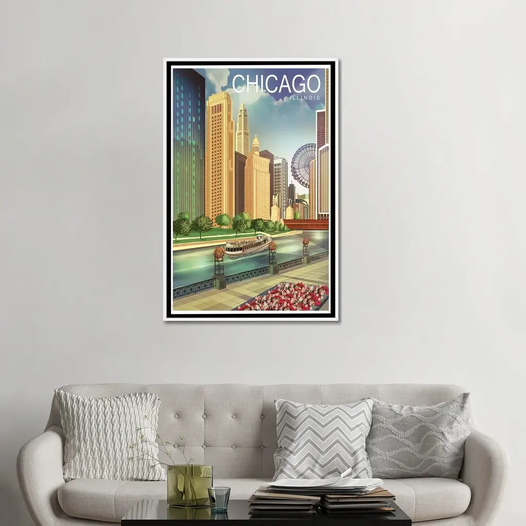 Icanvas "Chicago I" By Old Red Truck Framed Canvas Print - Black - 40x26