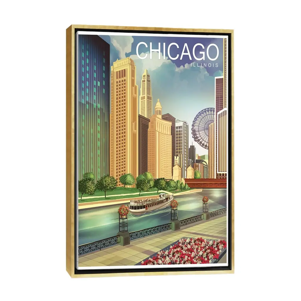 Icanvas "Chicago I" By Old Red Truck Framed Canvas Print - White - 26x18
