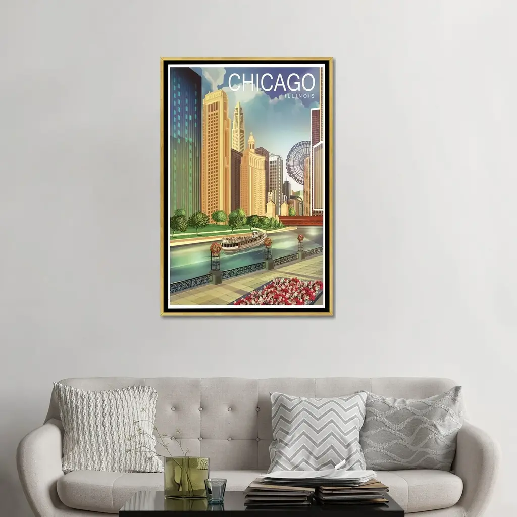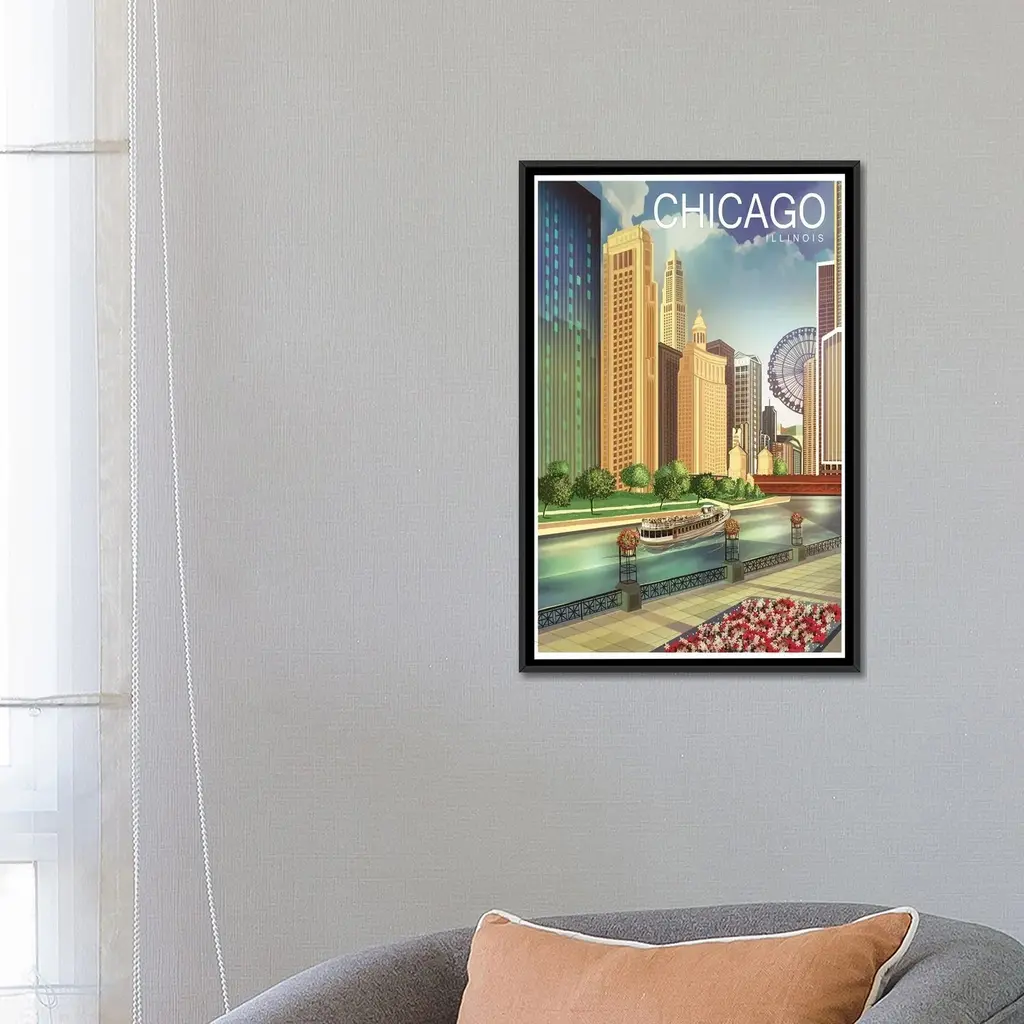 Icanvas "Chicago I" By Old Red Truck Framed Canvas Print - White - 40x26
