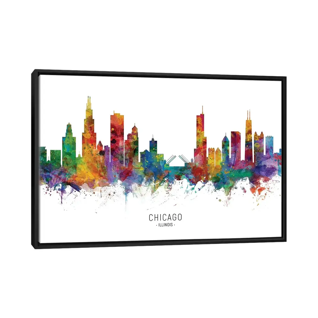Icanvas "Chicago Illinois Skyline" By Michael Tompsett Framed Canvas Print - White - 18x26