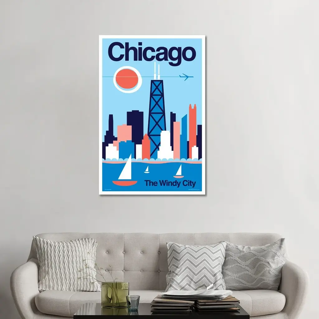 Icanvas "Chicago Minimalist Travel Poster" By Jim Zahniser Canvas Print - 26x18x1.5