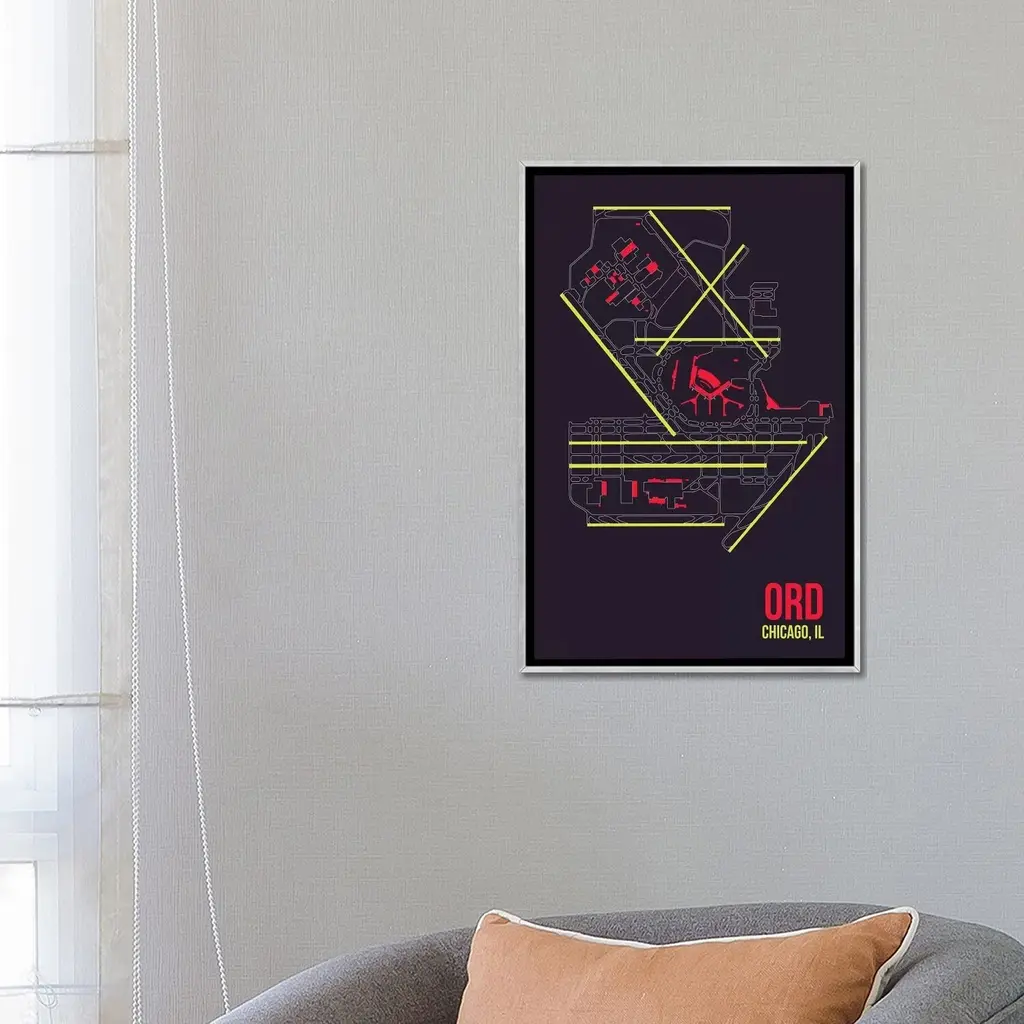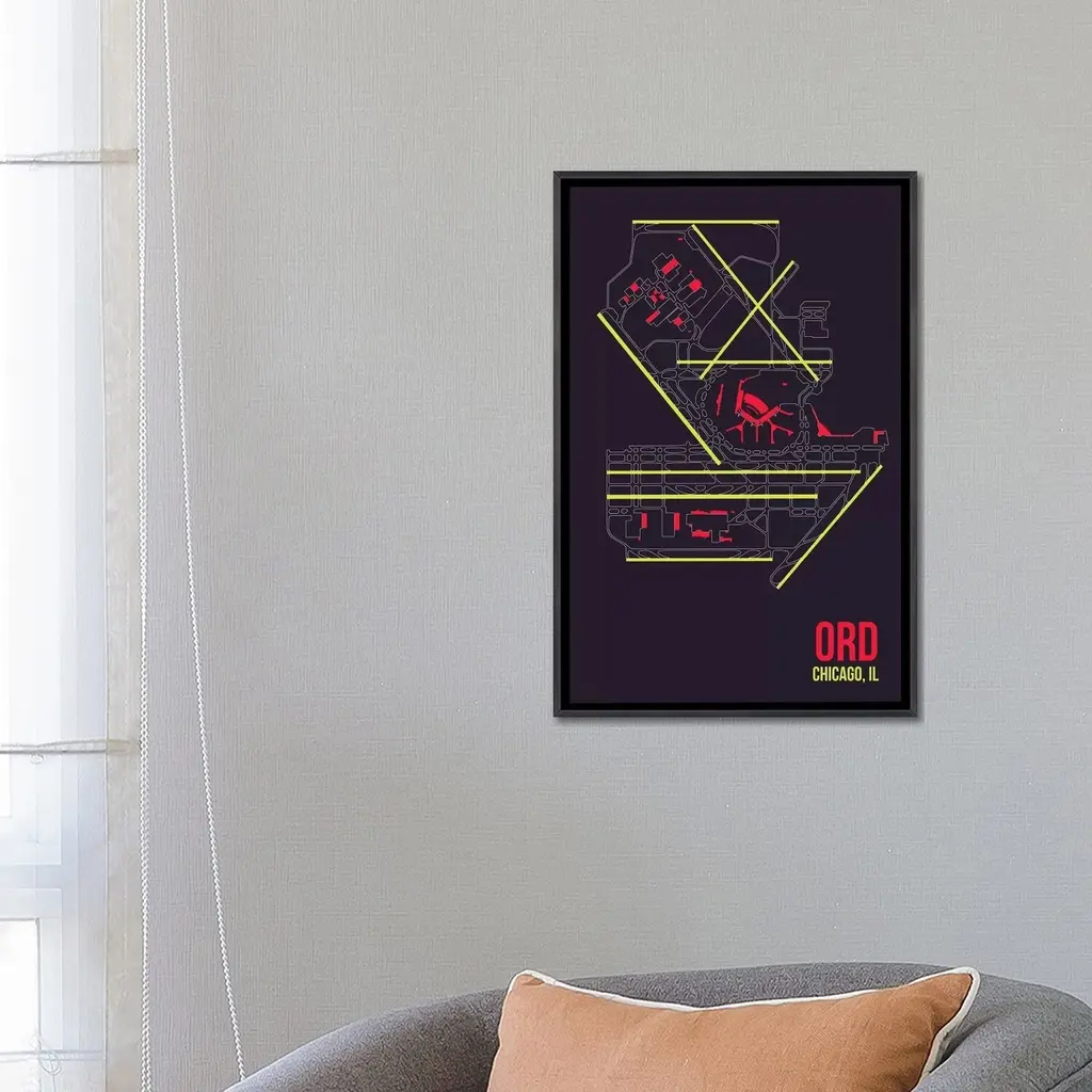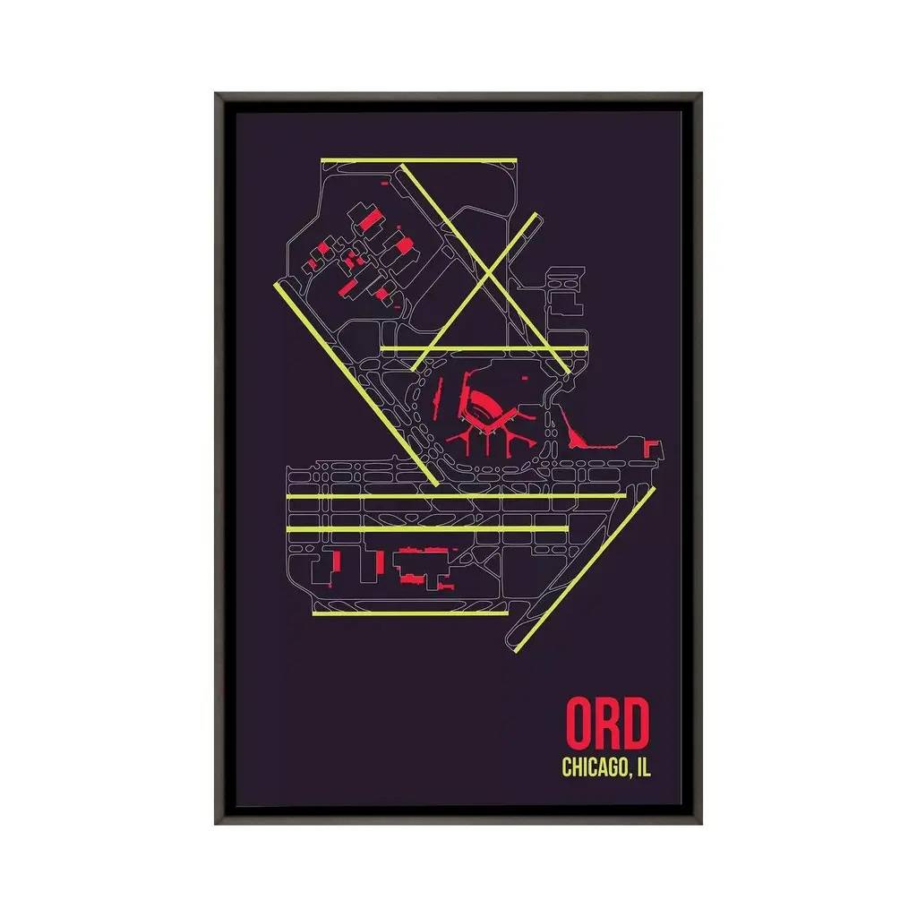 Icanvas "Chicago (O'hare)" By 08 Left Framed - Charcoal - 26x18