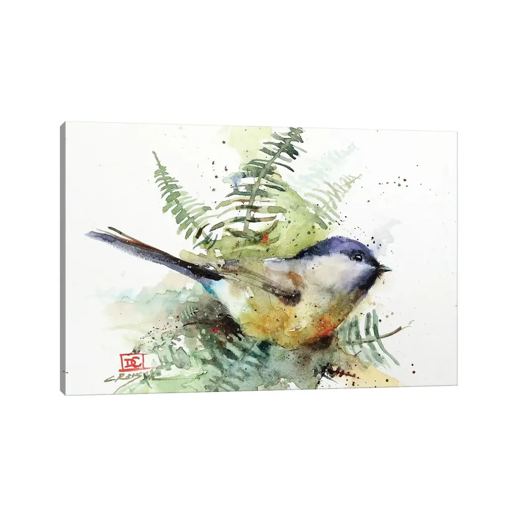 Icanvas "Chickadee & Ferns" By Dean Crouser Canvas Print - 8X12x0.75
