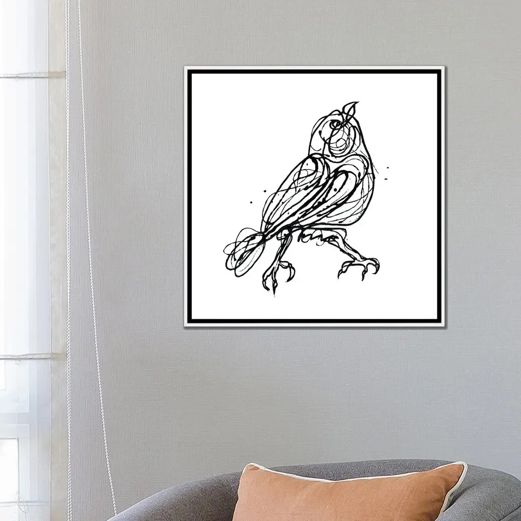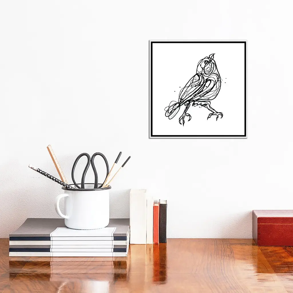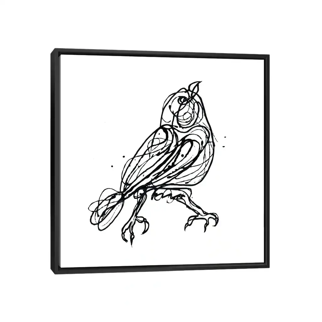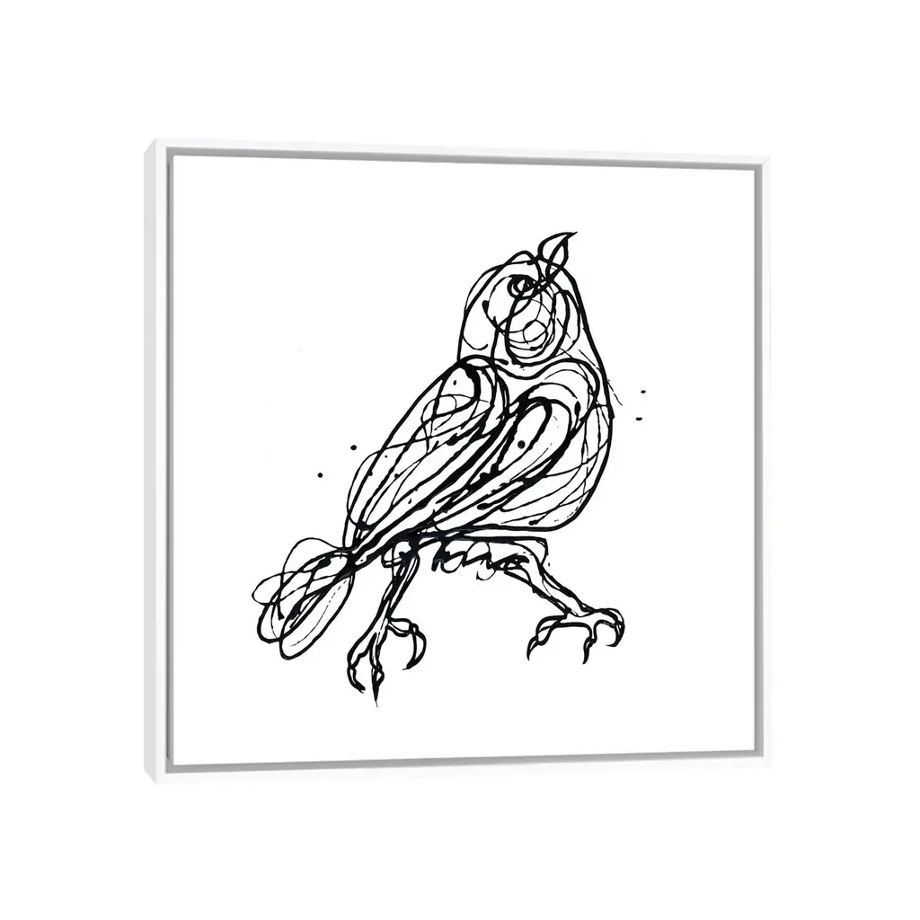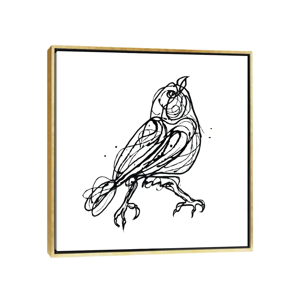 Icanvas "Chin Up - Cute Little Bird Jackson Pollock Style Drawing" By Olena Art Framed - Gold - 37x37