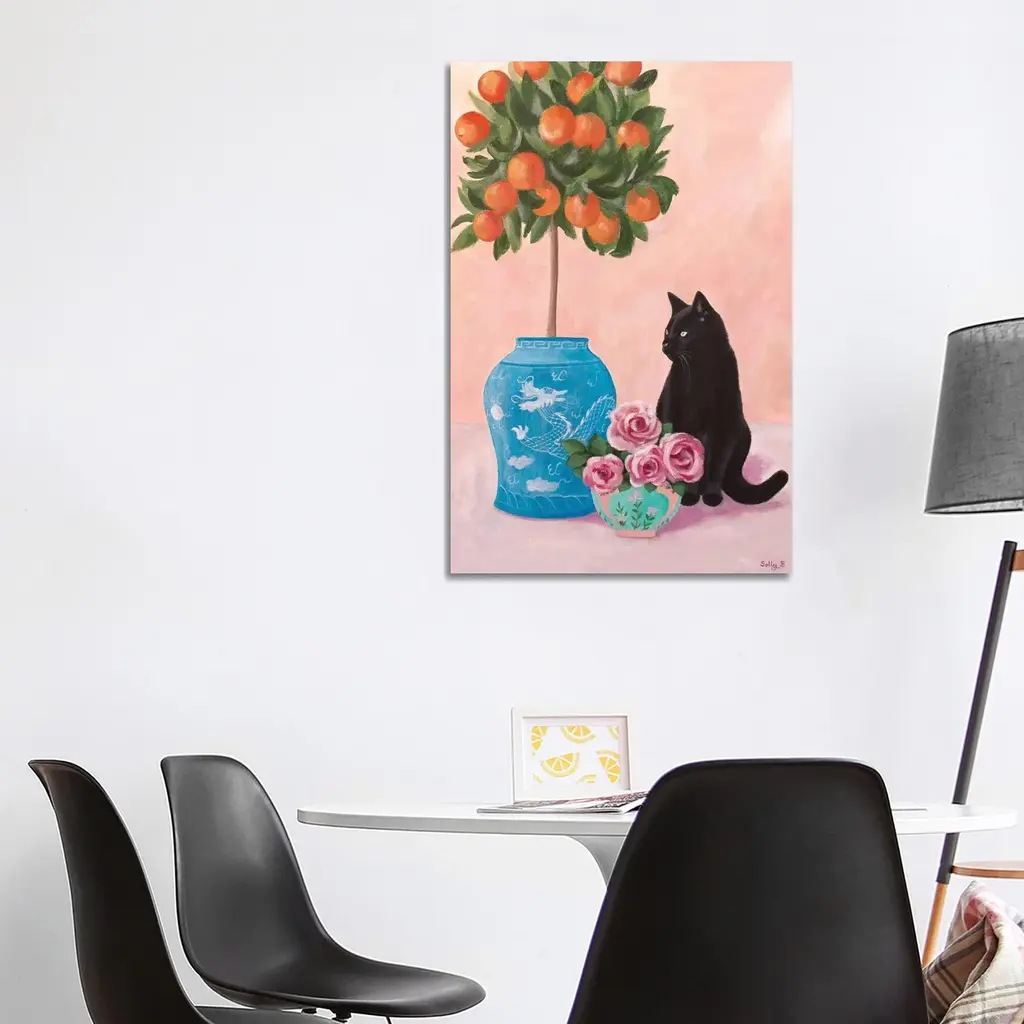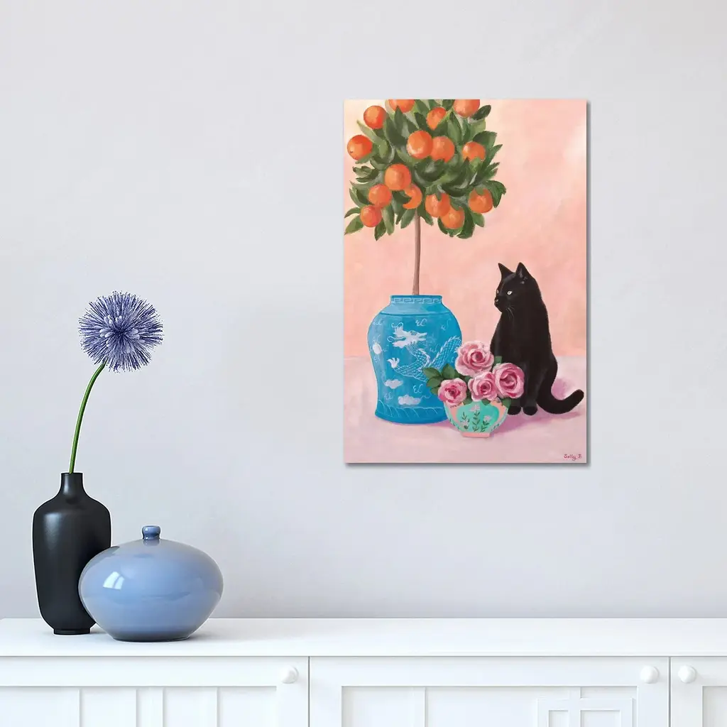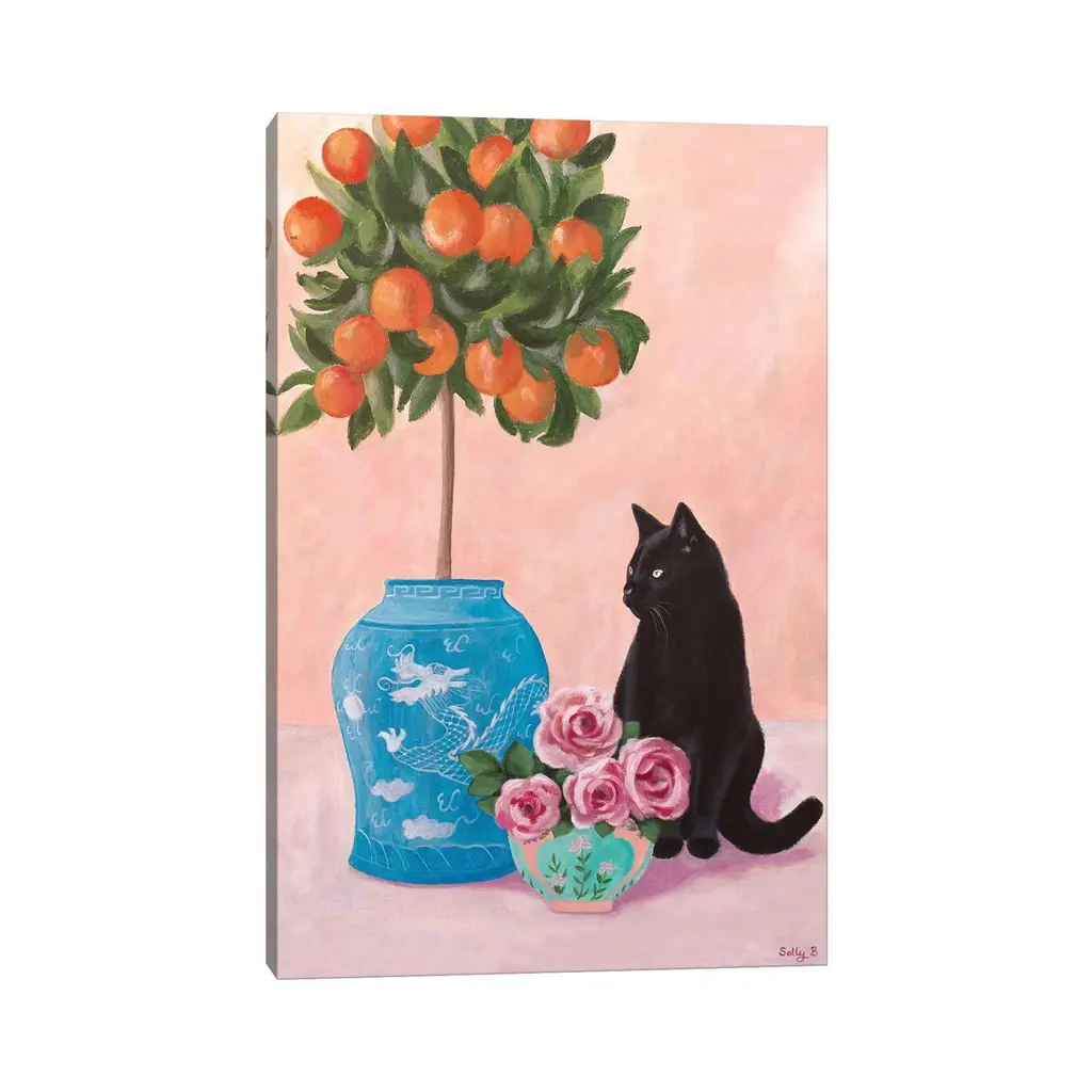 Icanvas "Chinoiserie Black Cat And Orange Tree" By Sally B Canvas Print - 12x8x0.75