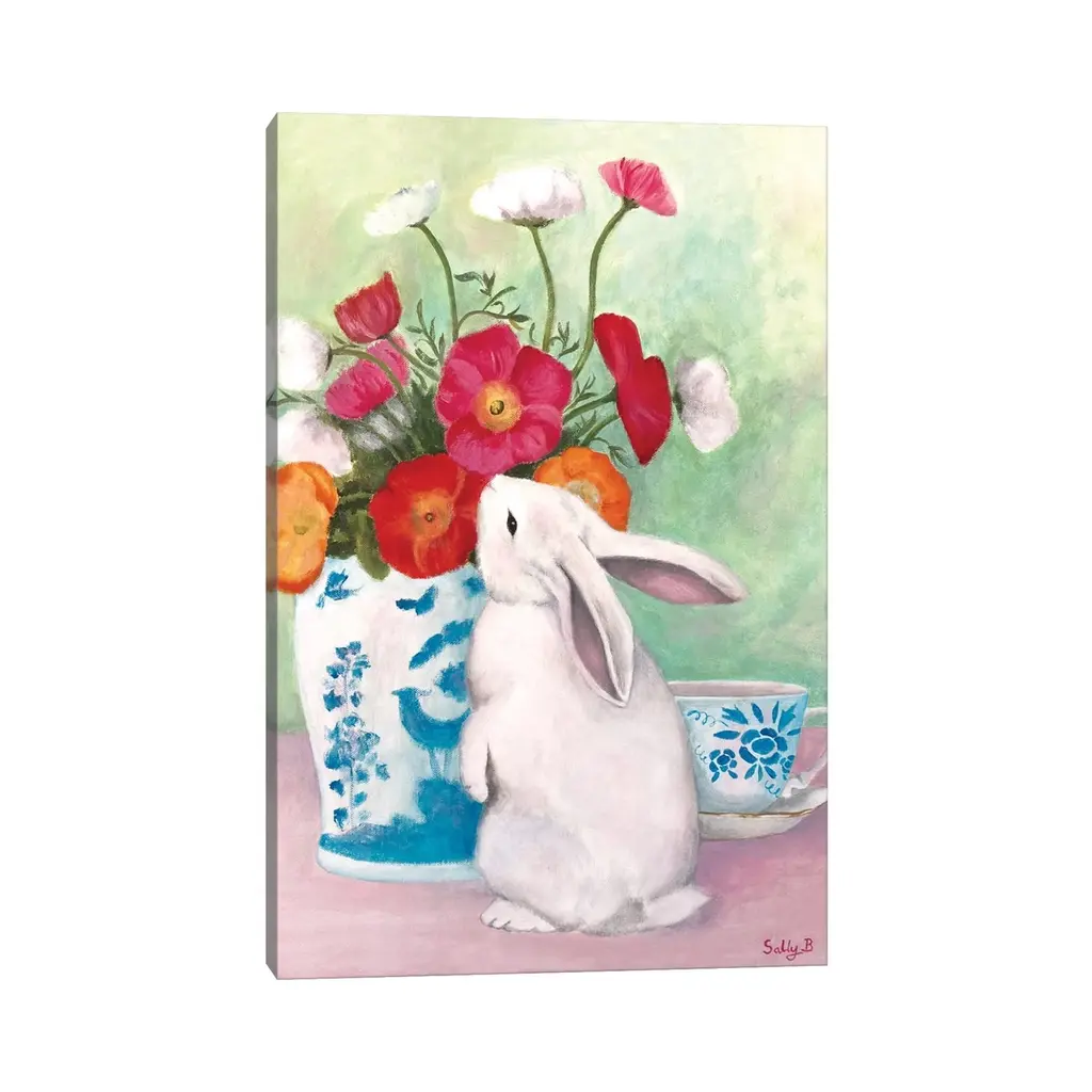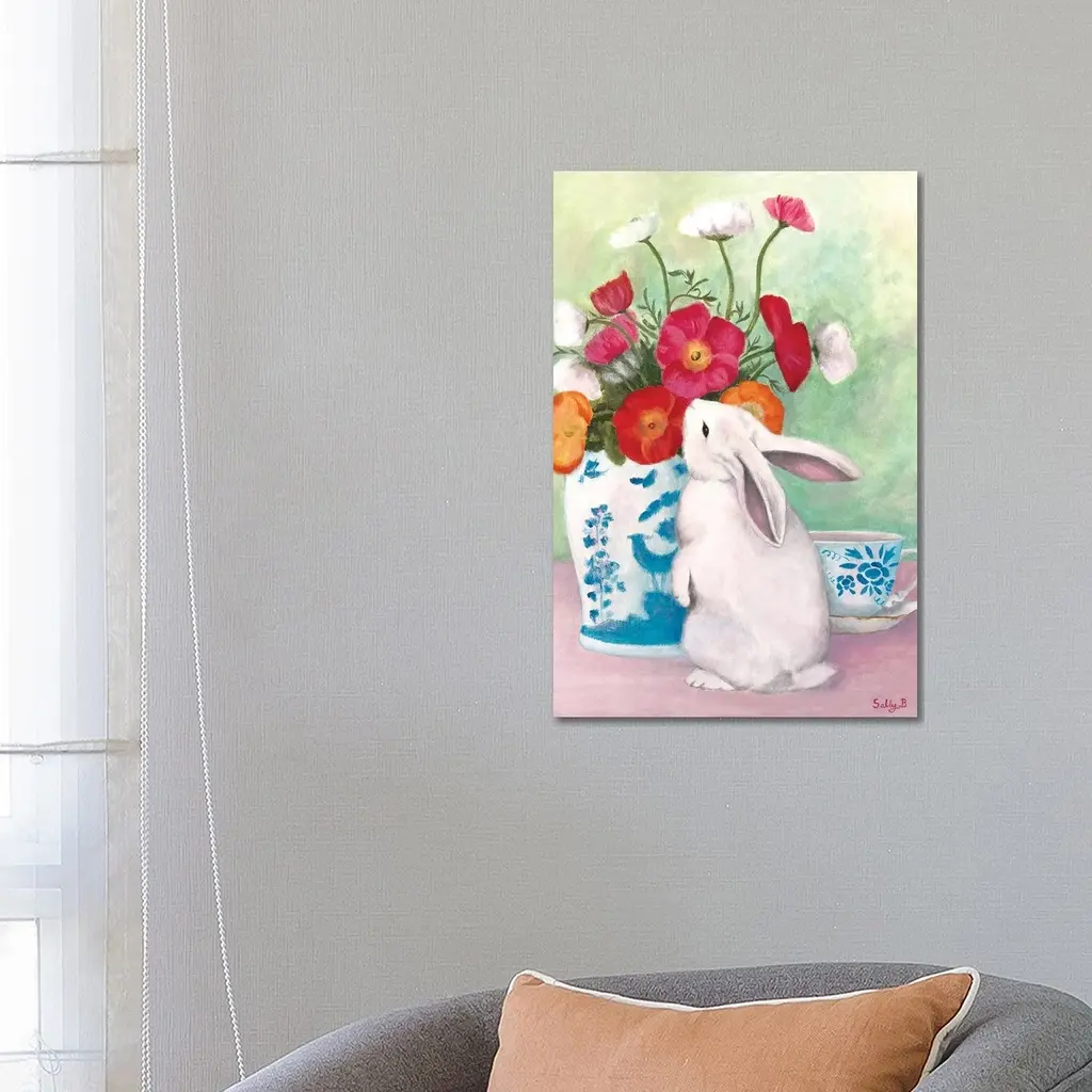 Icanvas "Chinoiserie Rabbit And Anemones" By Sally B Canvas Print - 12x8x0.75