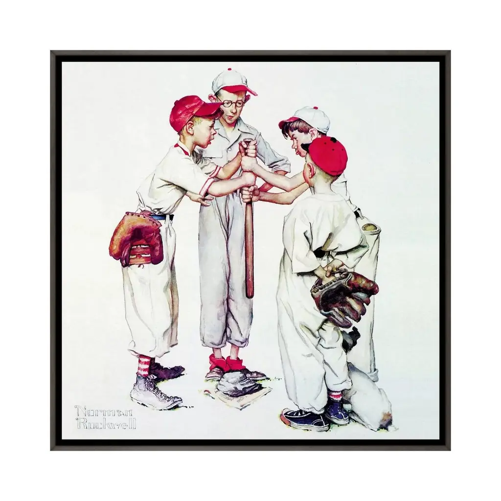 Icanvas "Choosing Up (Four Sporting Boys, Baseball)" By Norman Rockwell Framed - 18x18 - Charcoal