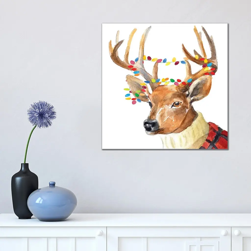 Icanvas "Christmas Lights Reindeer Sweater" By Lanie Loreth Canvas Print - 37x37x1.5