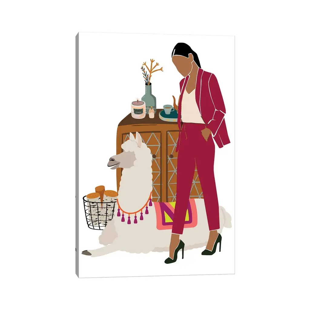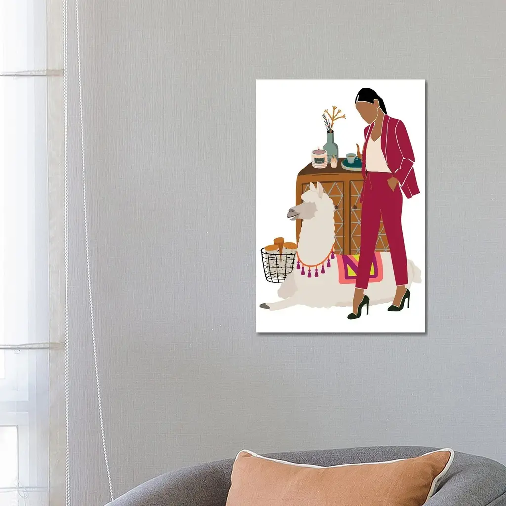 Icanvas "Christmas With Llama" By Jania Sharipzhanova Canvas Print - 40x26x1.5