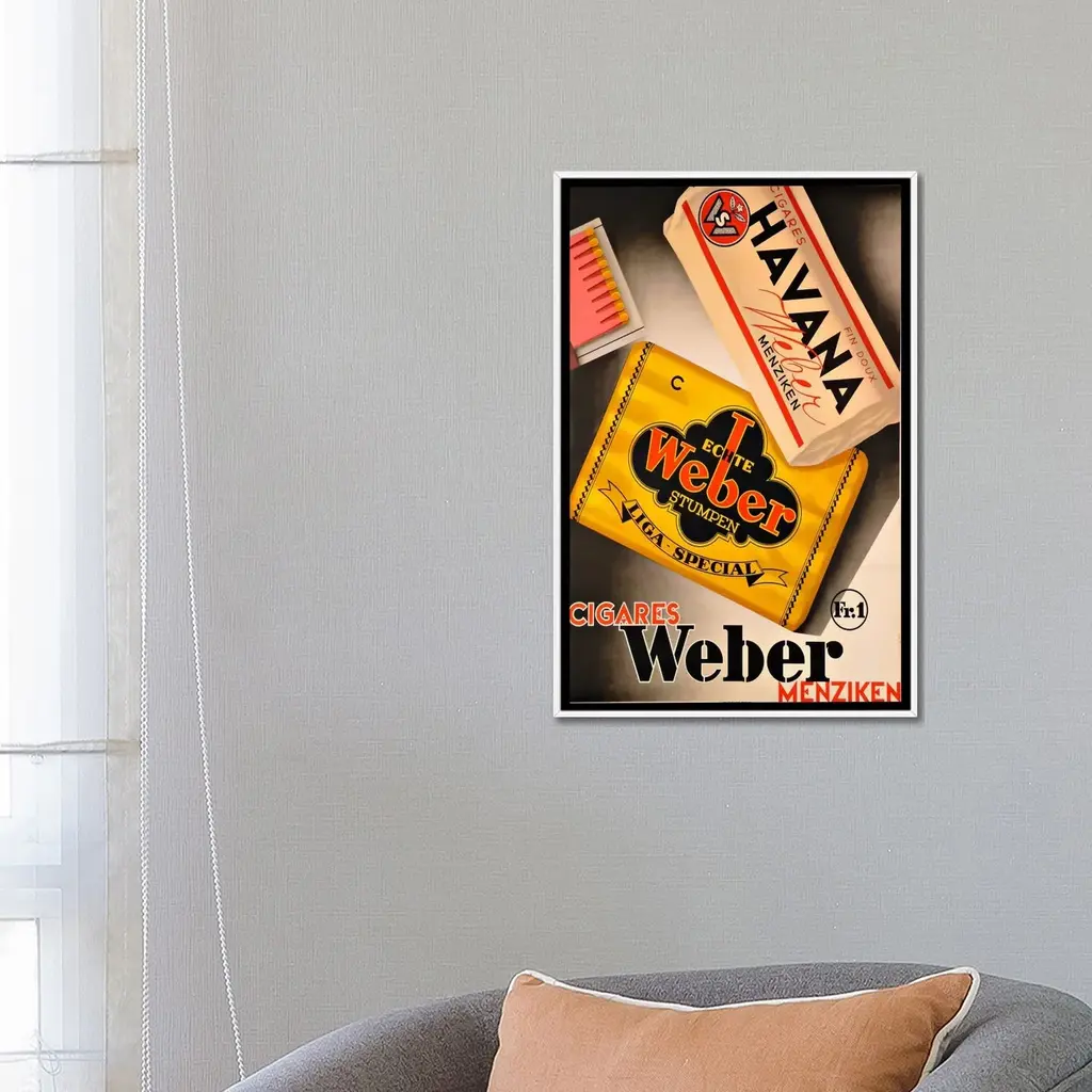 Icanvas "Cigares Weber" By Vintage Apple Collection Framed Canvas Print - Black - 26x18
