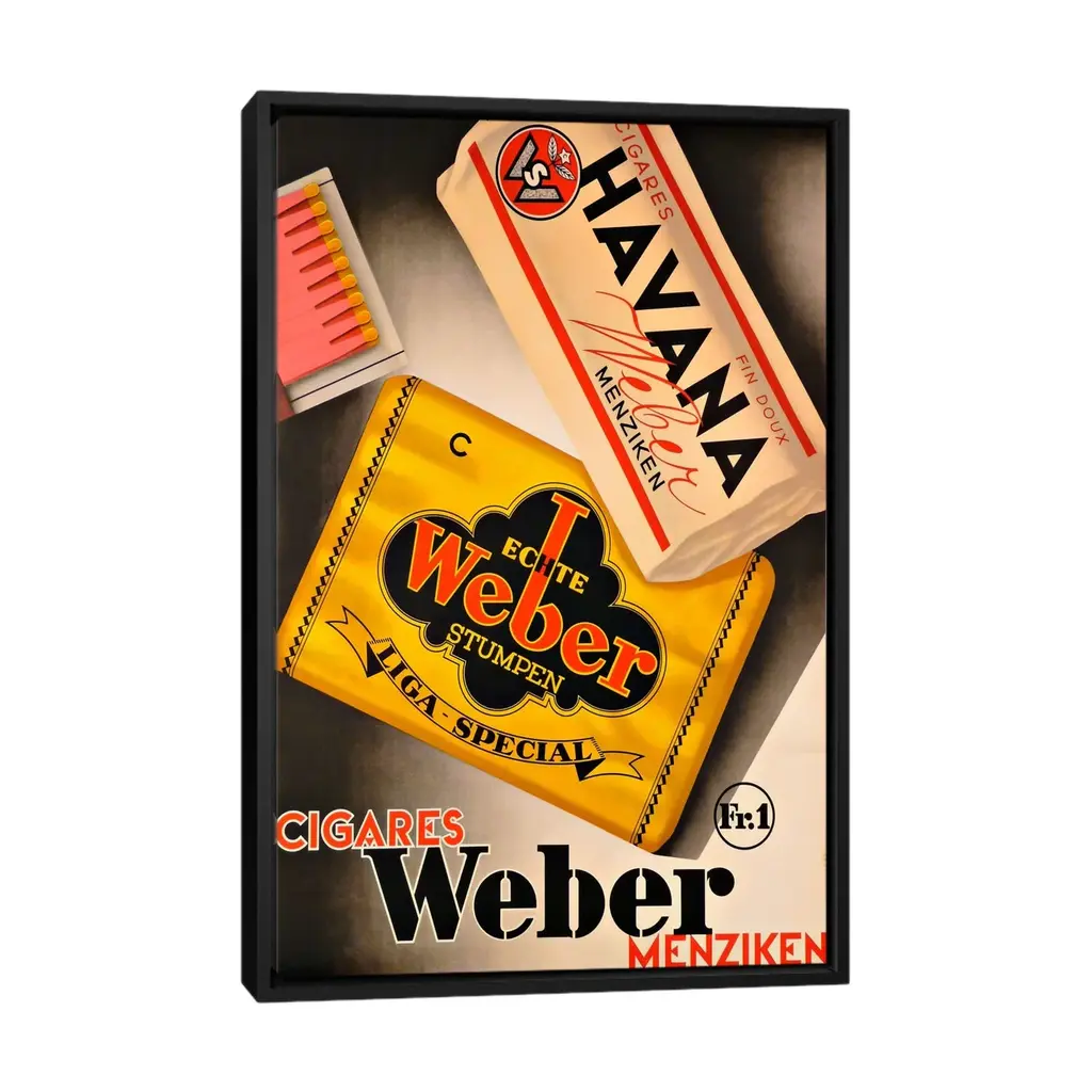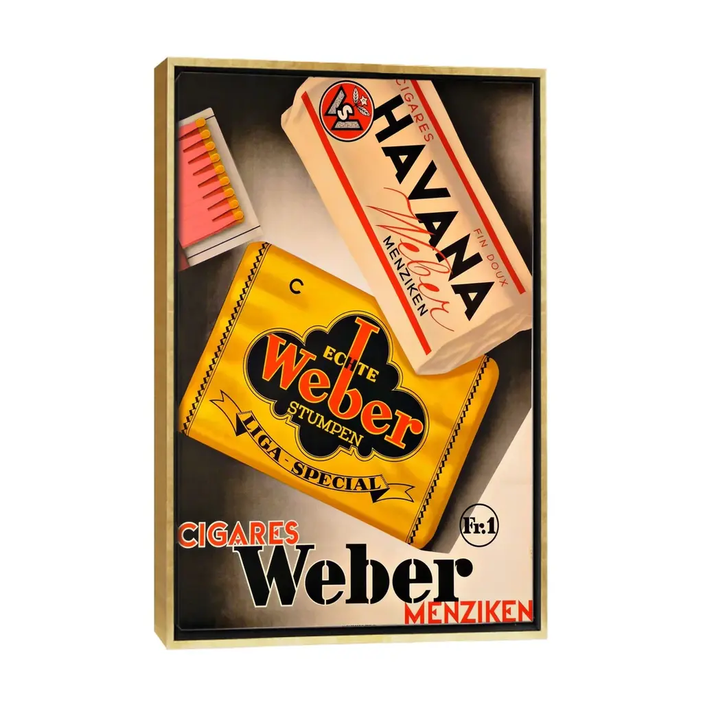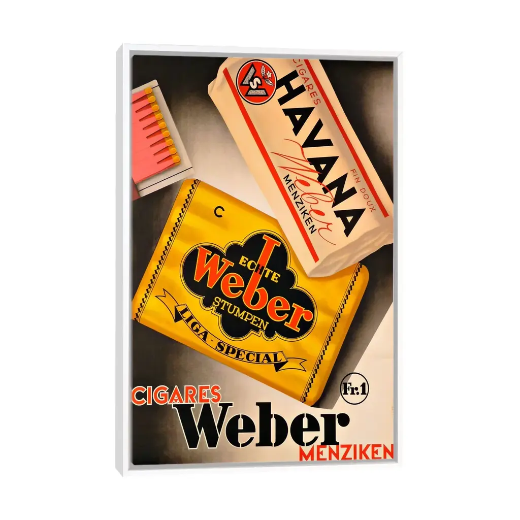 Icanvas "Cigares Weber" By Vintage Apple Collection Framed Canvas Print - White - 40x26