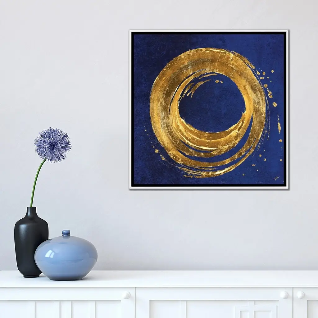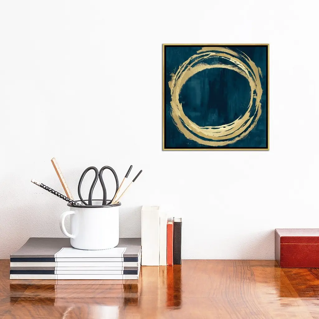 Icanvas "Circle Gold On Teal Ii" By Natalie Harris Framed Canvas Print - 12x12 - Gold
