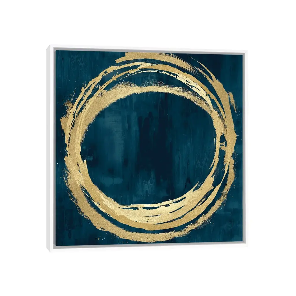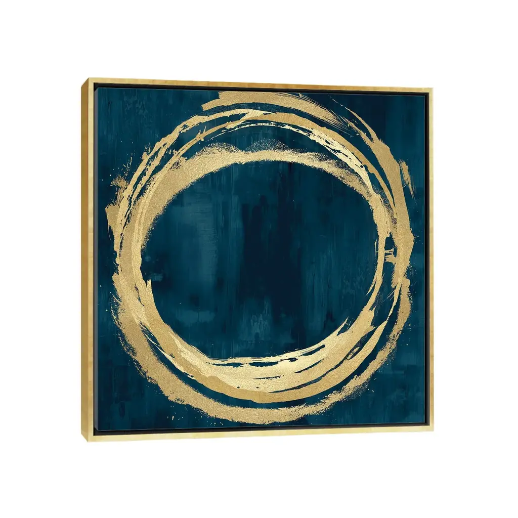 Icanvas "Circle Gold On Teal Ii" By Natalie Harris Framed Canvas Print - 18x18 - Black