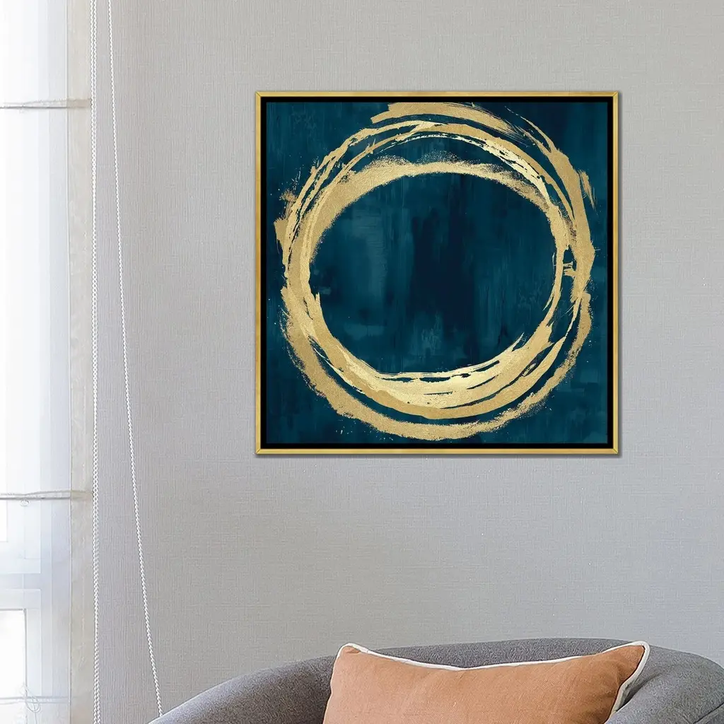 Icanvas "Circle Gold On Teal Ii" By Natalie Harris Framed Canvas Print - 26x26 - Gold