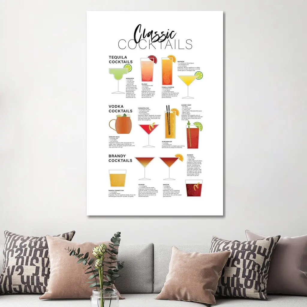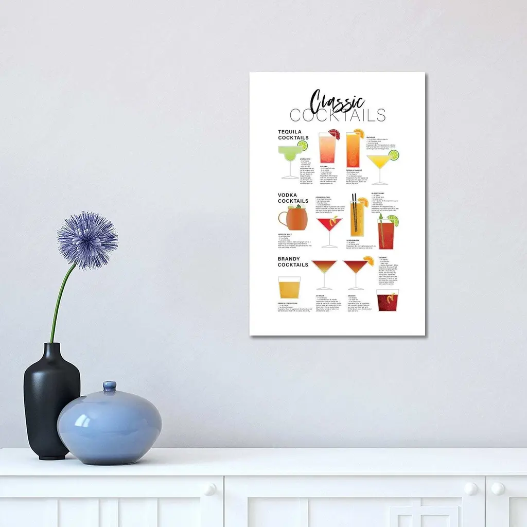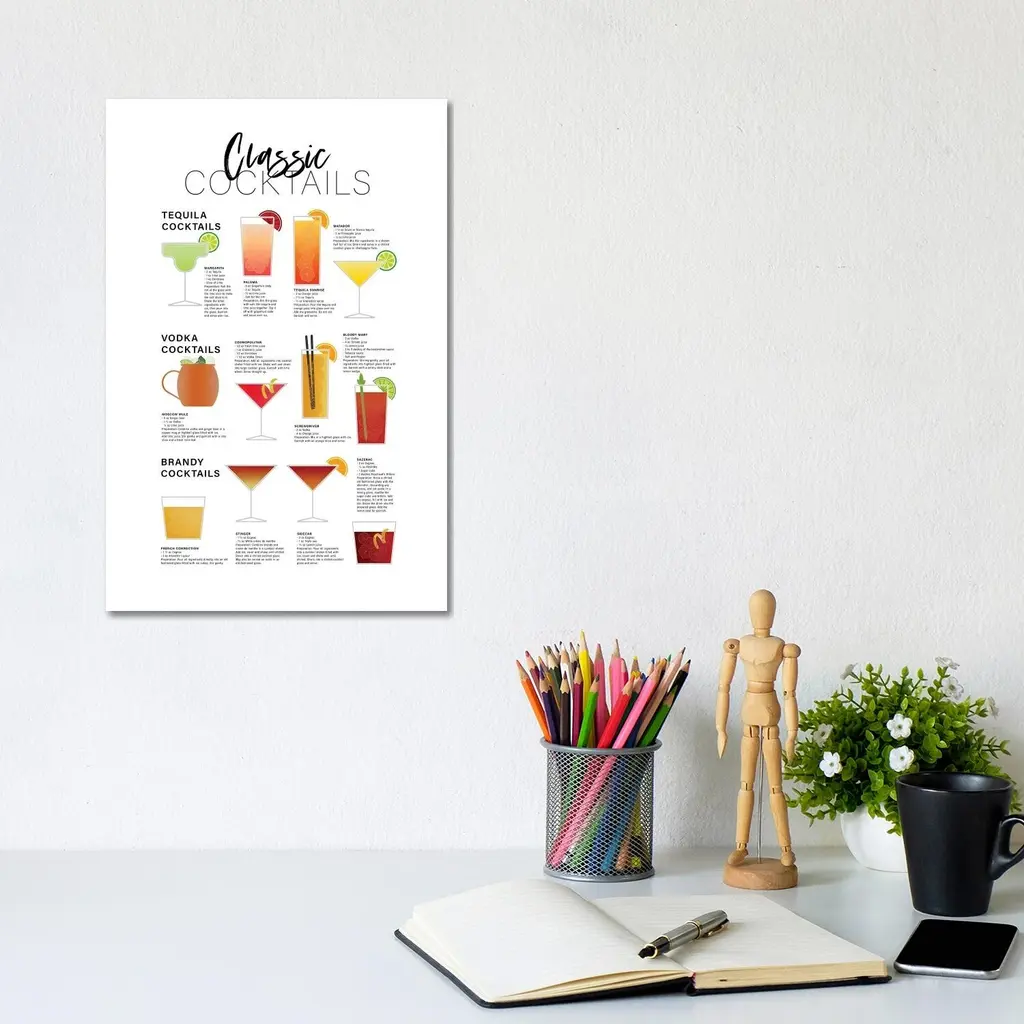 Icanvas "Classic Cocktails - Tequila Brandy Vodka" By Alchera Design Posters Canvas Print - 12x8x0.75