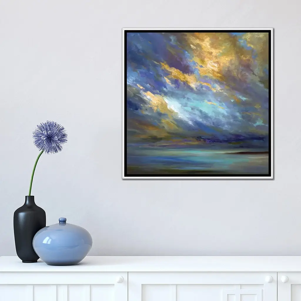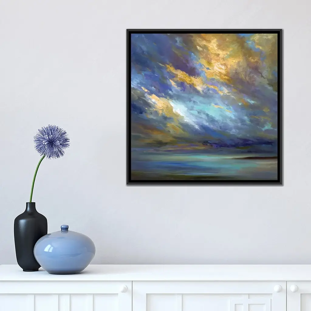 Icanvas "Coastal Clouds Xxx" By Sheila Finch Framed Canvas Print - Black - 12x12