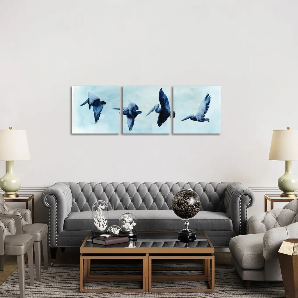 Icanvas "Coastal Covey I" By Grace Popp 3-Piece Canvas Wall Art Set - 12x36x1.5
