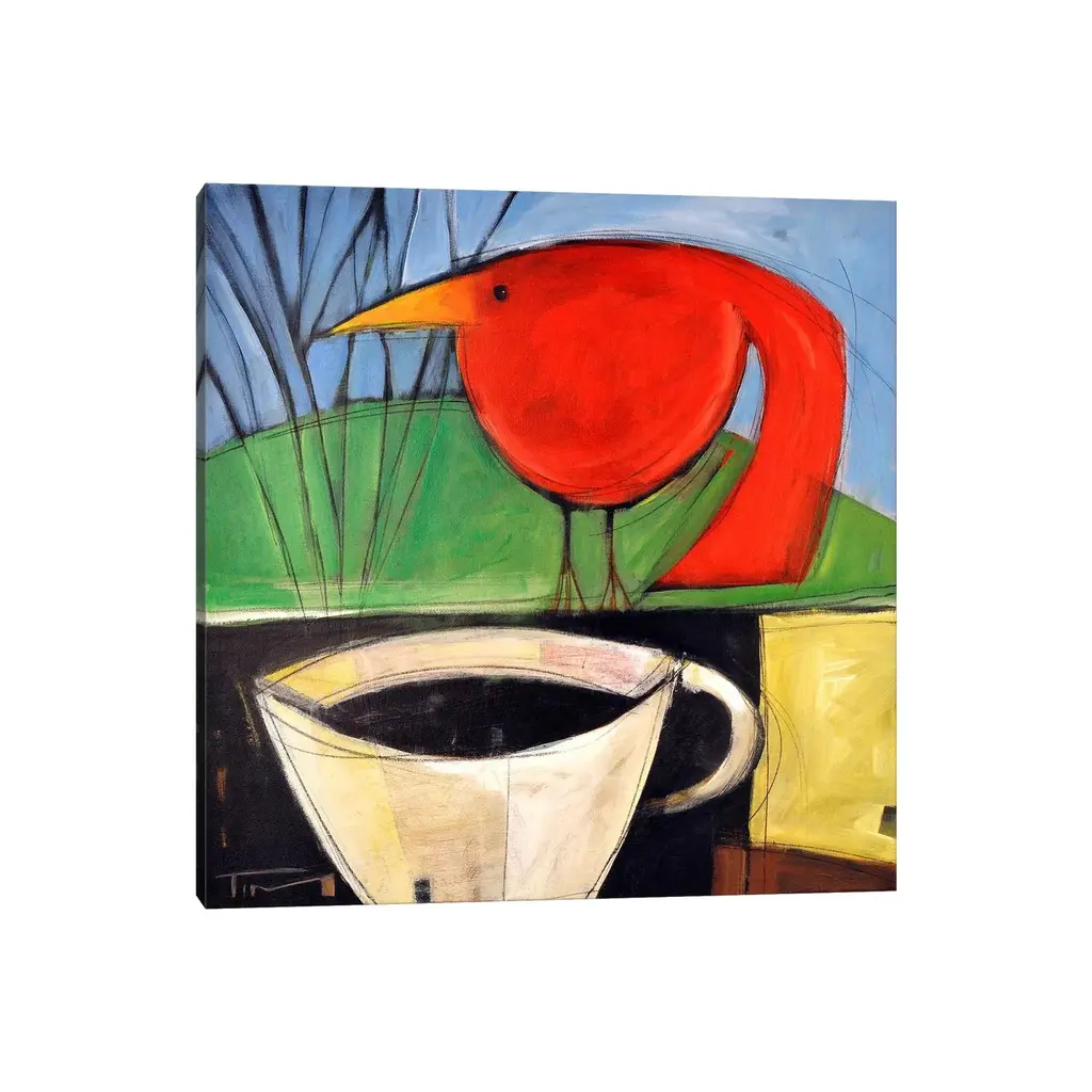 Icanvas "Coffee And Red Bird" By Tim Nyberg Canvas Print - 18x18x1.5