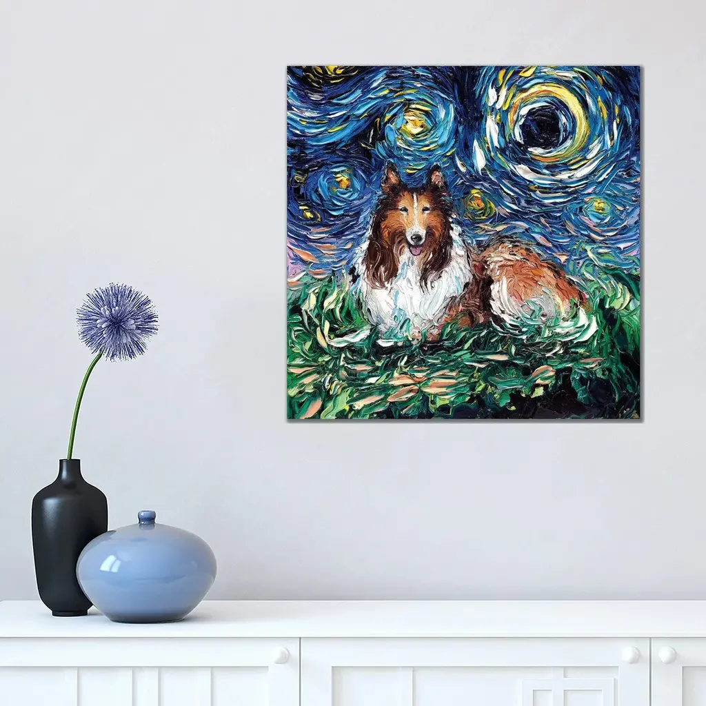 Icanvas "Collie Night" By Aja Trier Canvas Print - 37x37x1.5