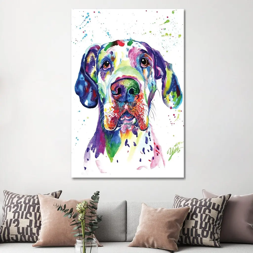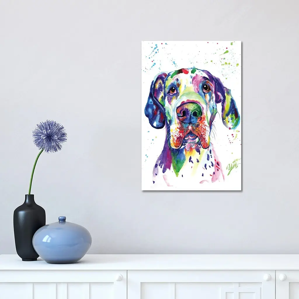 Icanvas "Colorful Great Dane" By Yubis Guzman Canvas Print - 26x18x1.5