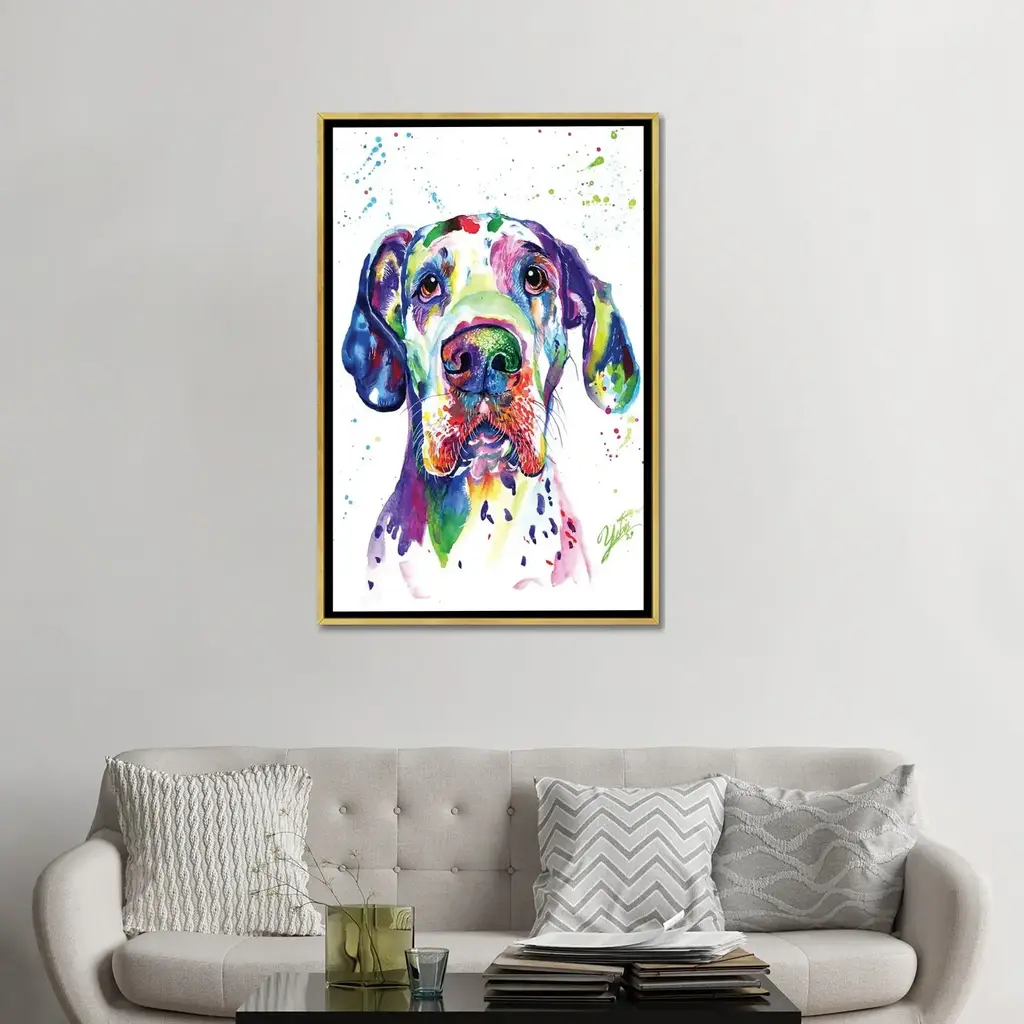 Icanvas "Colorful Great Dane" By Yubis Guzman Framed Canvas Print - Gold - 48x32