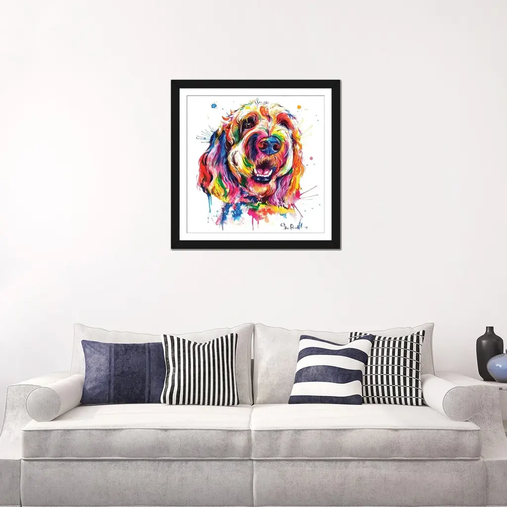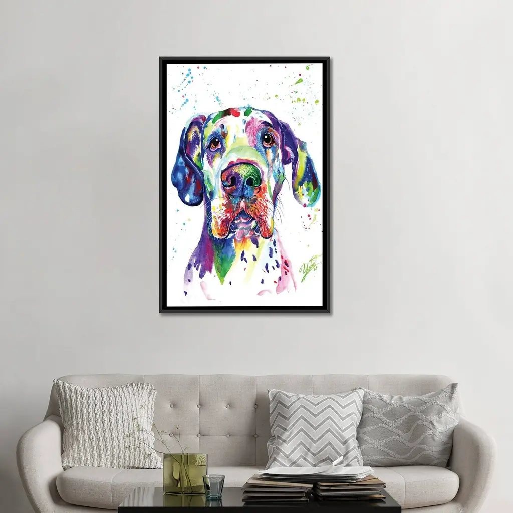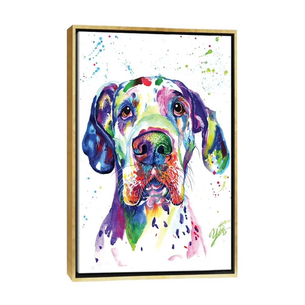 Icanvas "Colorful Great Dane" By Yubis Guzman Framed Canvas Print - White - 26x18