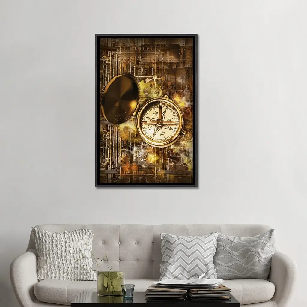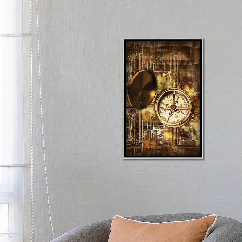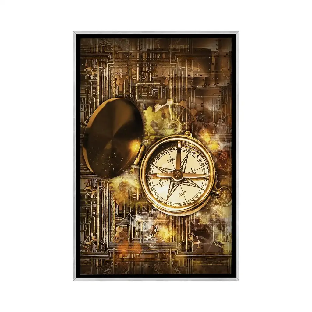 Icanvas "Compass Steampunk" By Durro Art Framed - Ebony - 48x32