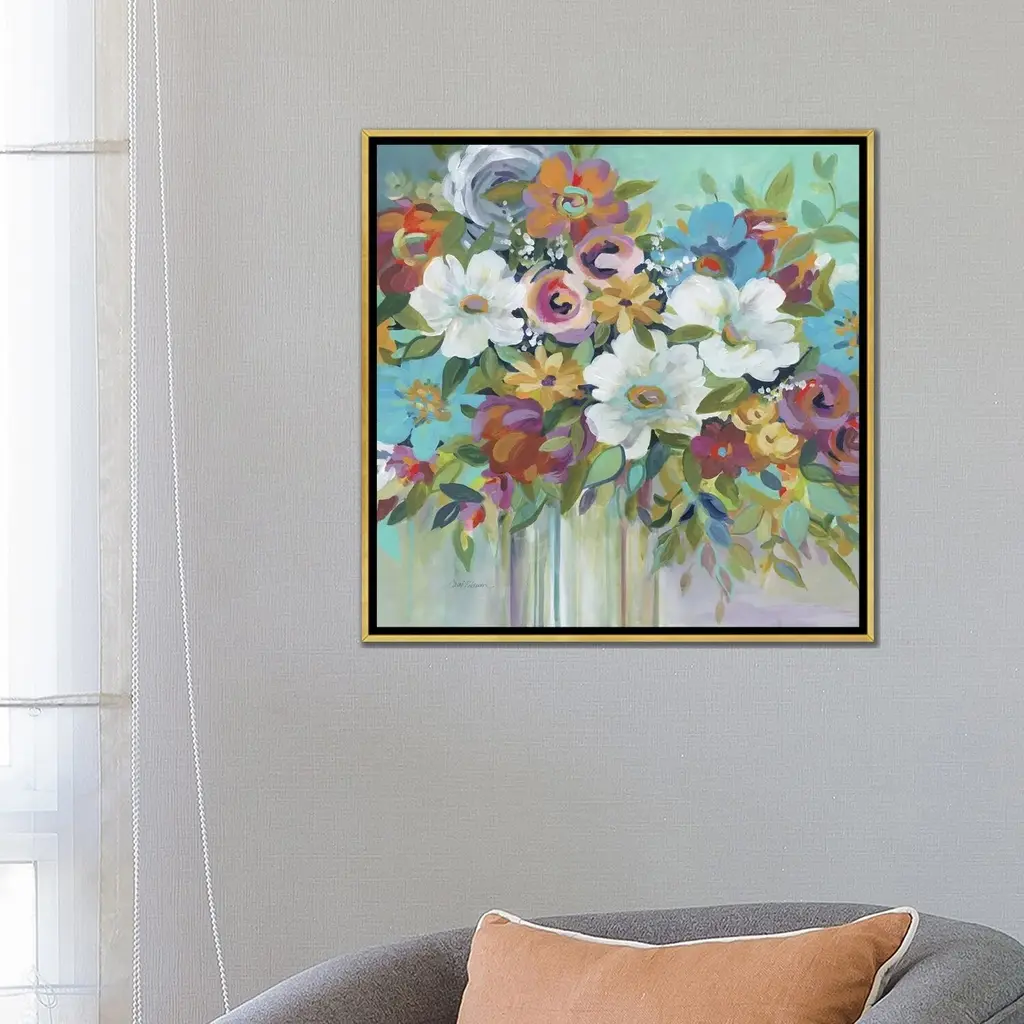 Icanvas "Confetti Bouquet I" By Carol Robinson Framed Canvas Print - Gold - 18x18