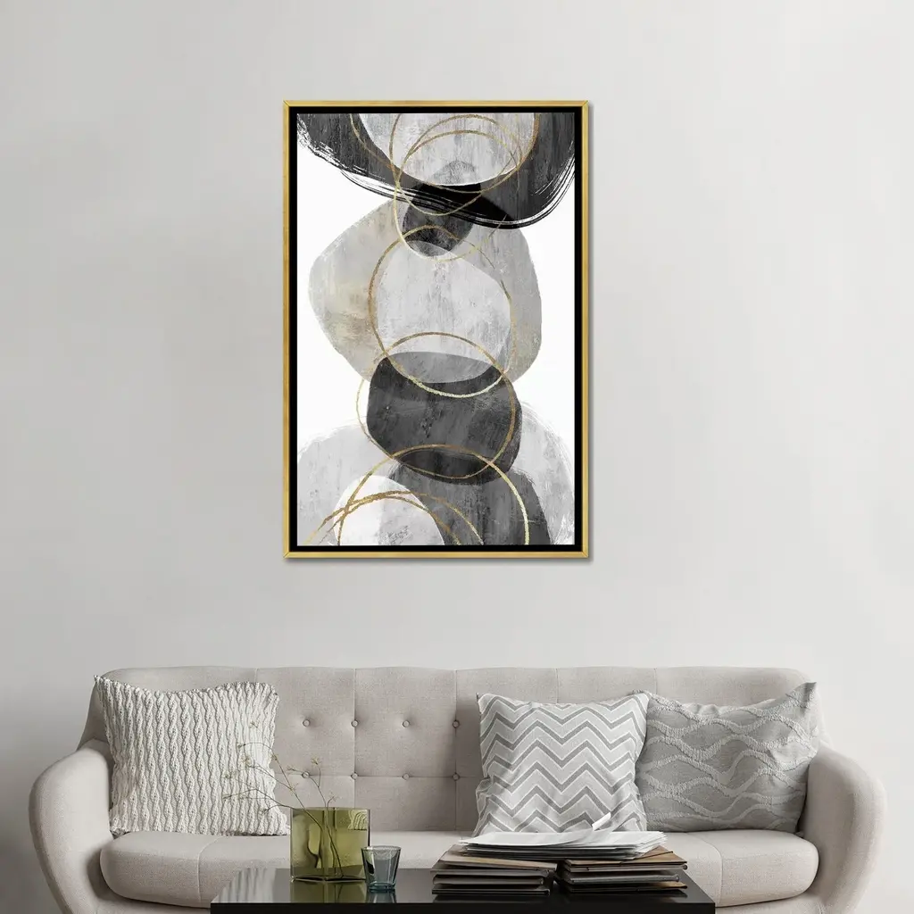 Elevate your space with the iCanvas "Conglomerate II" Framed Canvas Print by PI Studio. This high-quality artwork is expertly crafted in the USA, using artist-grade canvas and gallery wrap style for a professional and luxurious look. The print is mounted on a 2-inch thick hardwood frame, creating a unique "floating" illusion. With fade-resistant archival inks, the vibrant colors and exceptional detail will remain vivid for decades. Experience the texture and elegance of fine art with this contemporary and uncompromising canvas print.Features: