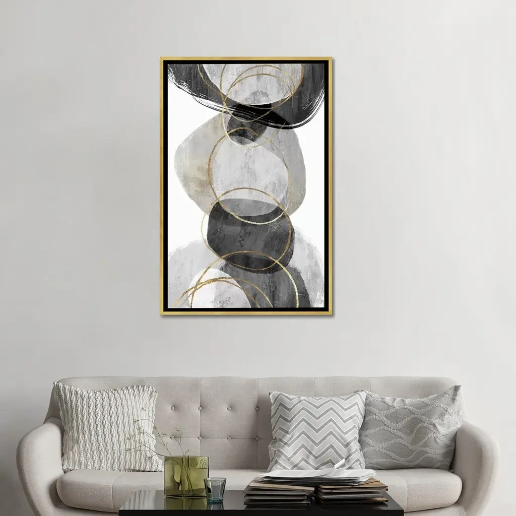 Icanvas "Conglomerate Ii" By Pi Studio Framed Canvas Print - Gold - 48x32
