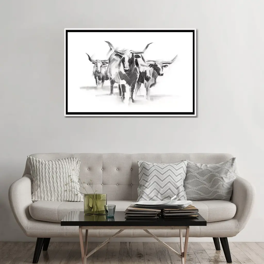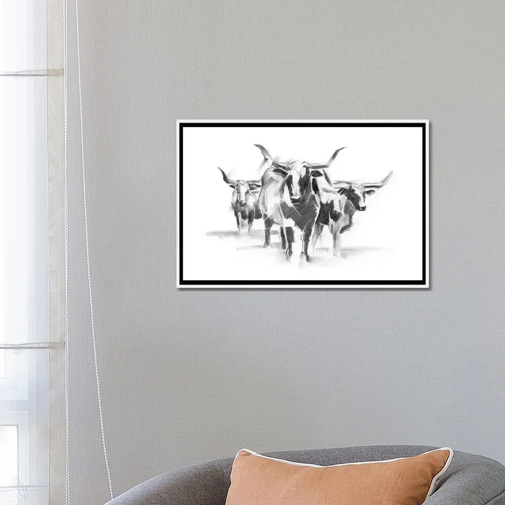 Icanvas "Contemporary Cattle I" By Ethan Harper Framed - Black - 32x48