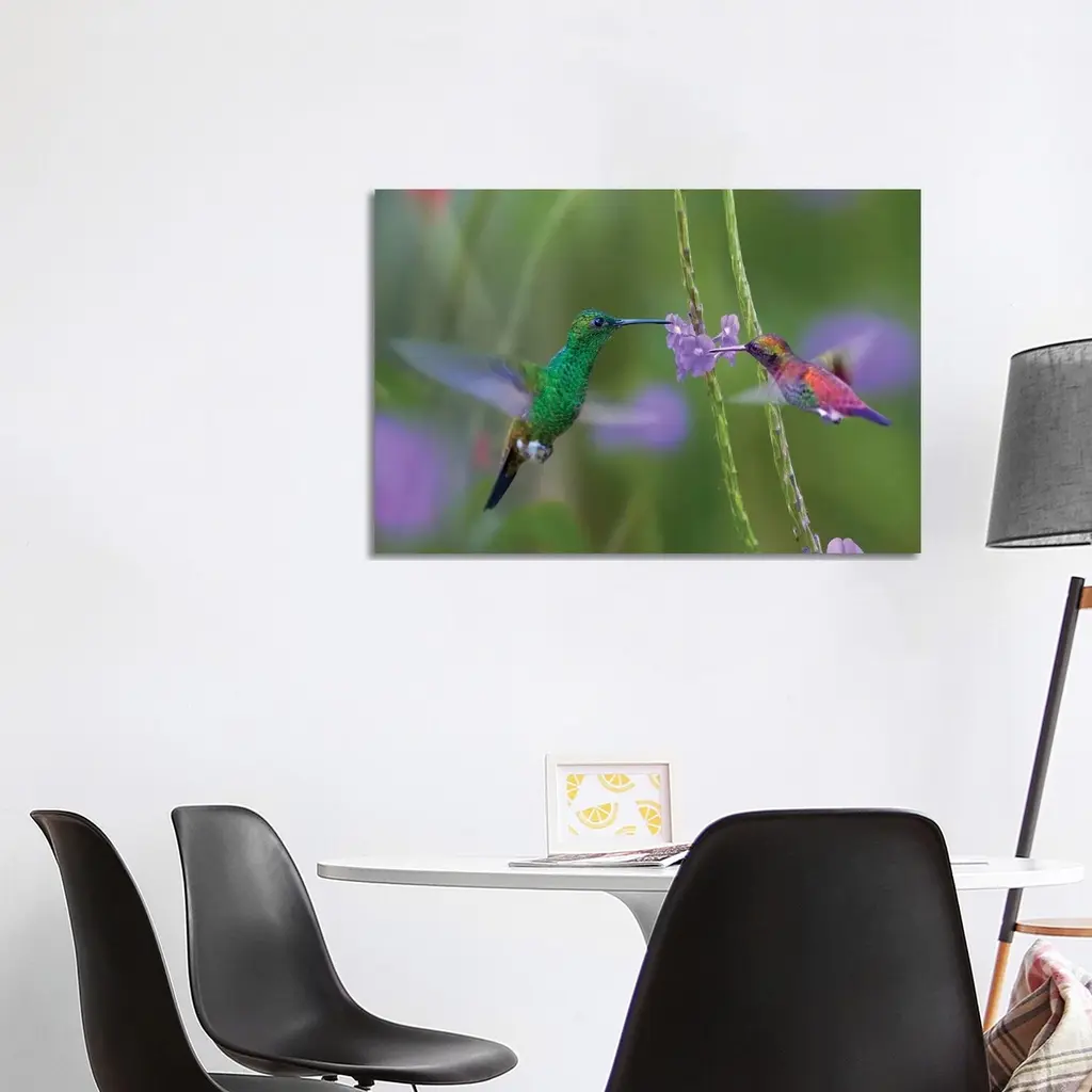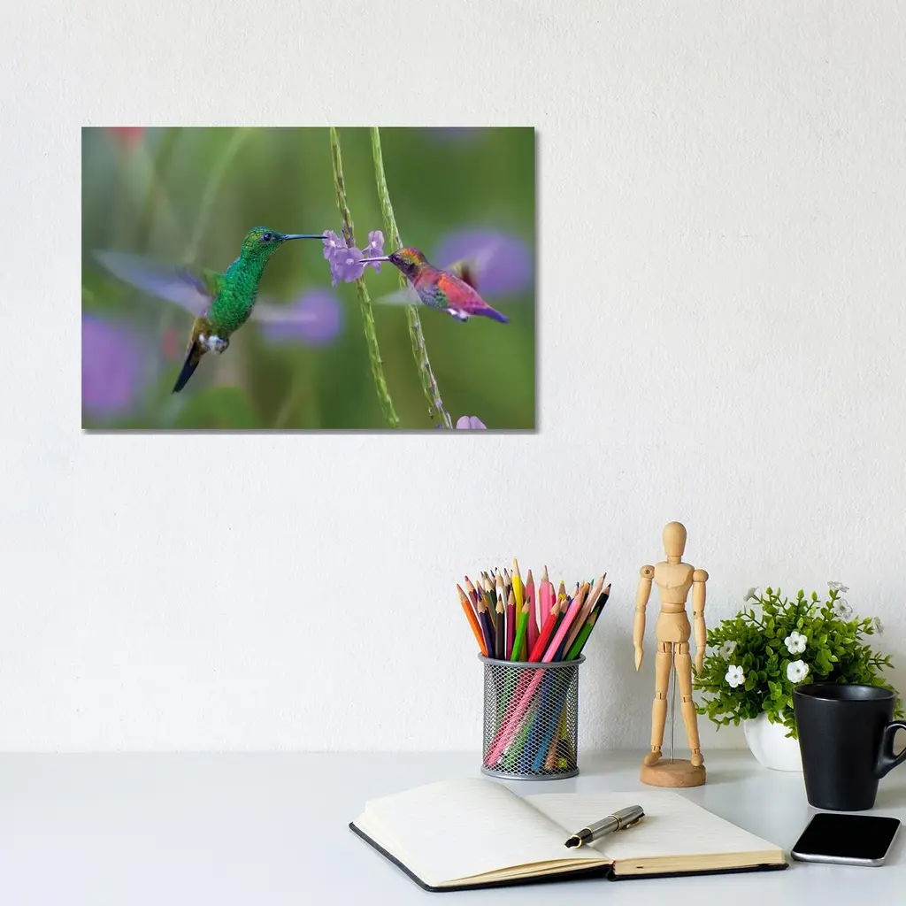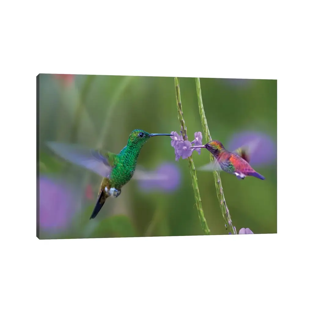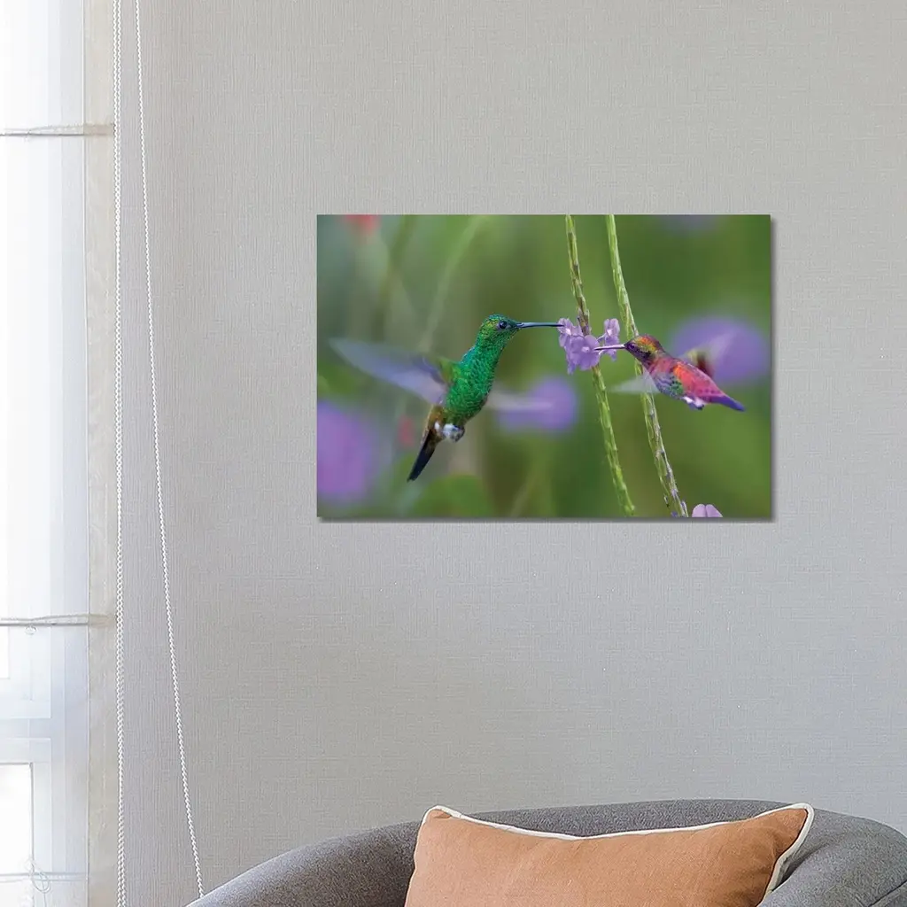 Icanvas "Copper-Rumped Hummingbird And Green-Throated Mango Feeding, Trinidad" By Tim Fitzharris Canvas Print - 18x26x1.5