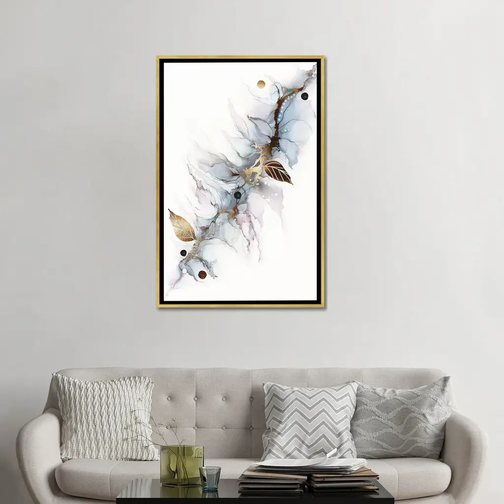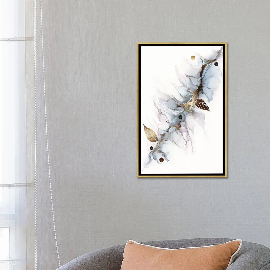 Icanvas "Coppered Vein Alcohol Ink Abstract Flower" By Pomaikai Barron Framed - Gold - 40x26