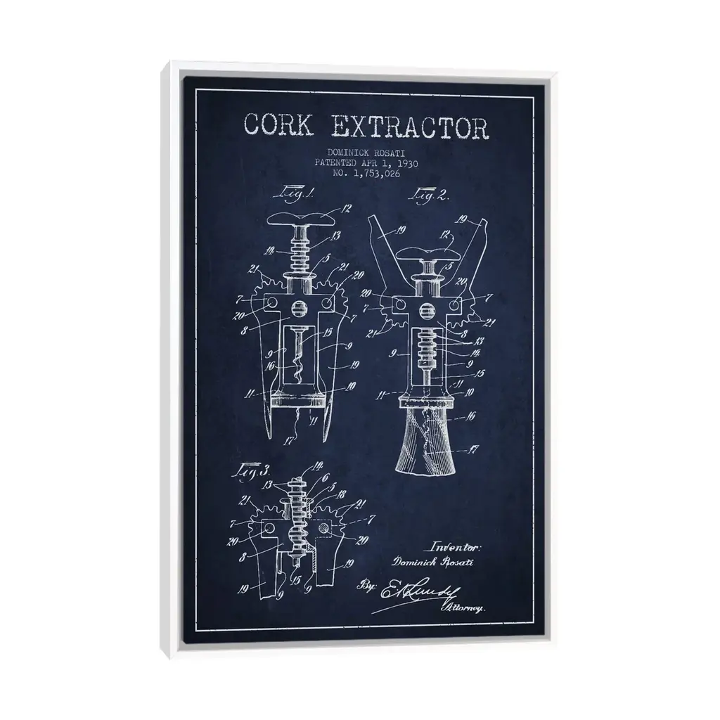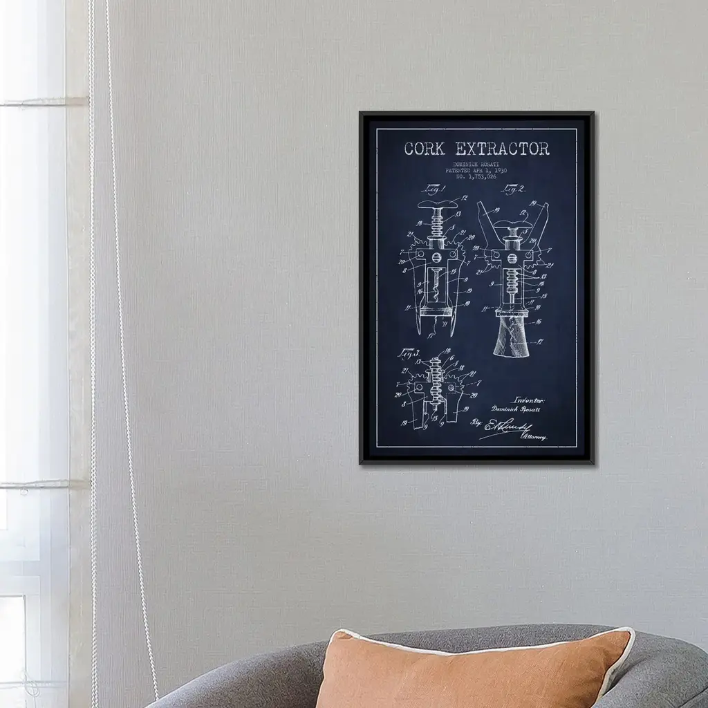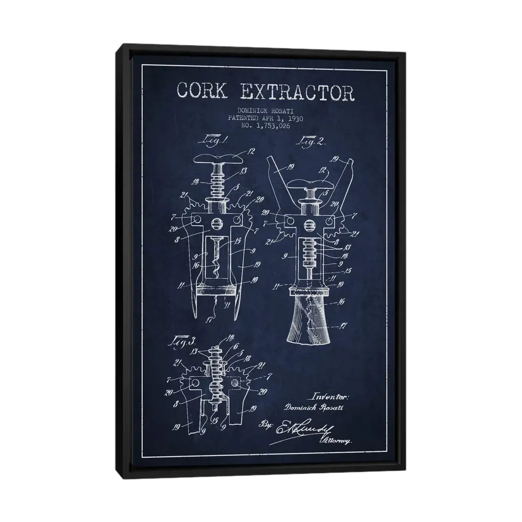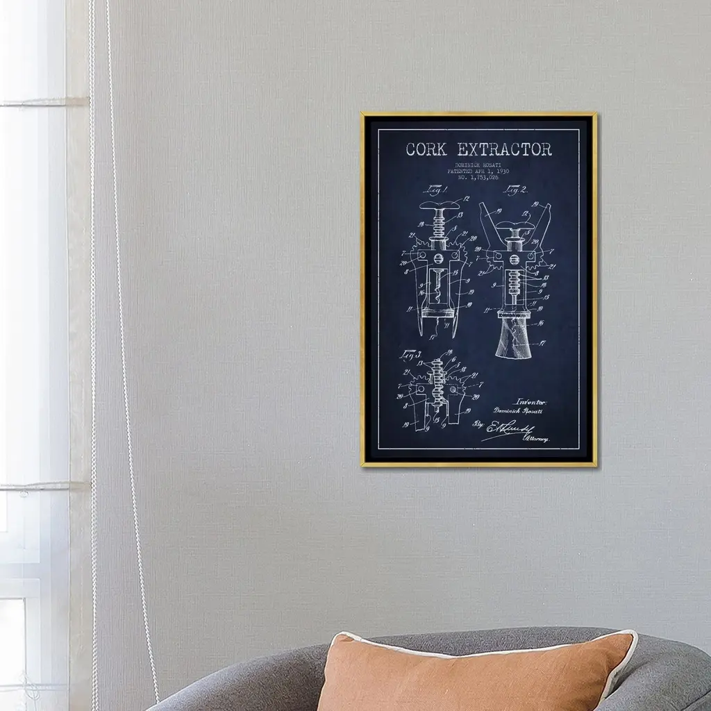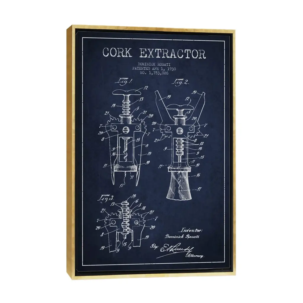 Icanvas "Corkscrew Navy Blue Patent Blueprint" By Aged Pixel Framed Canvas Print - Gold - 48x32
