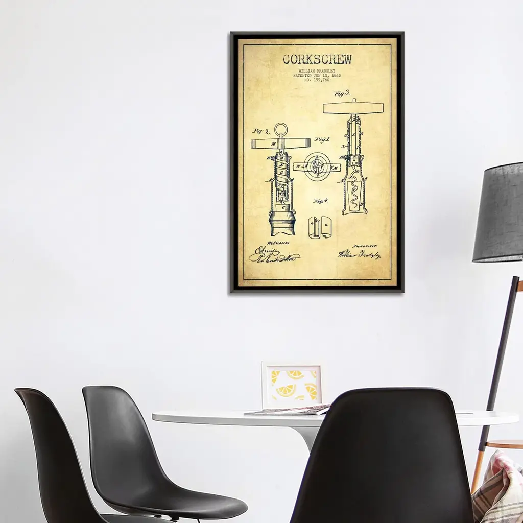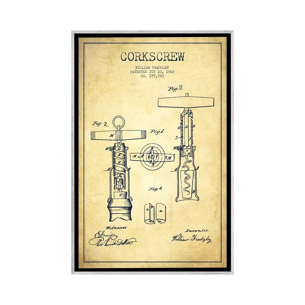 Icanvas "Corkscrew Vintage Patent Blueprint" By Aged Pixel Framed - Charcoal - 40x26