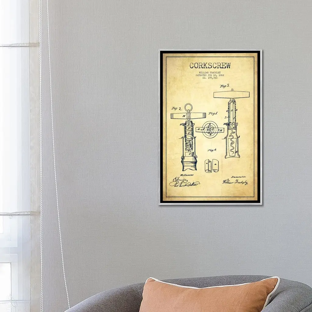 Icanvas "Corkscrew Vintage Patent Blueprint" By Aged Pixel Framed - Charcoal - 48x32